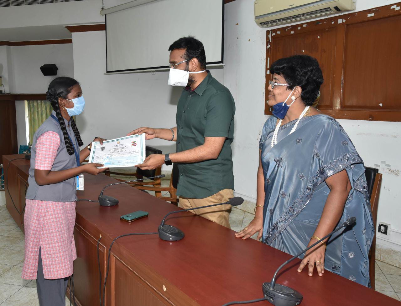 நாகப்பட்டினம் மாவட்டஆட்சியர் அலுவலகத்தில் தமிழ் வளர்ச்சித் துறை சார்பில் நடைபெற்ற பேச்சுப்போட்டியில் வெற்றி பெற்ற மாணவர்களுக்கு மாவட்ட ஆட்சியர் காசோலை மற்றும் பாராட்டுச் சான்றிதழ்களை வழங்கி கௌரவித்தார்.