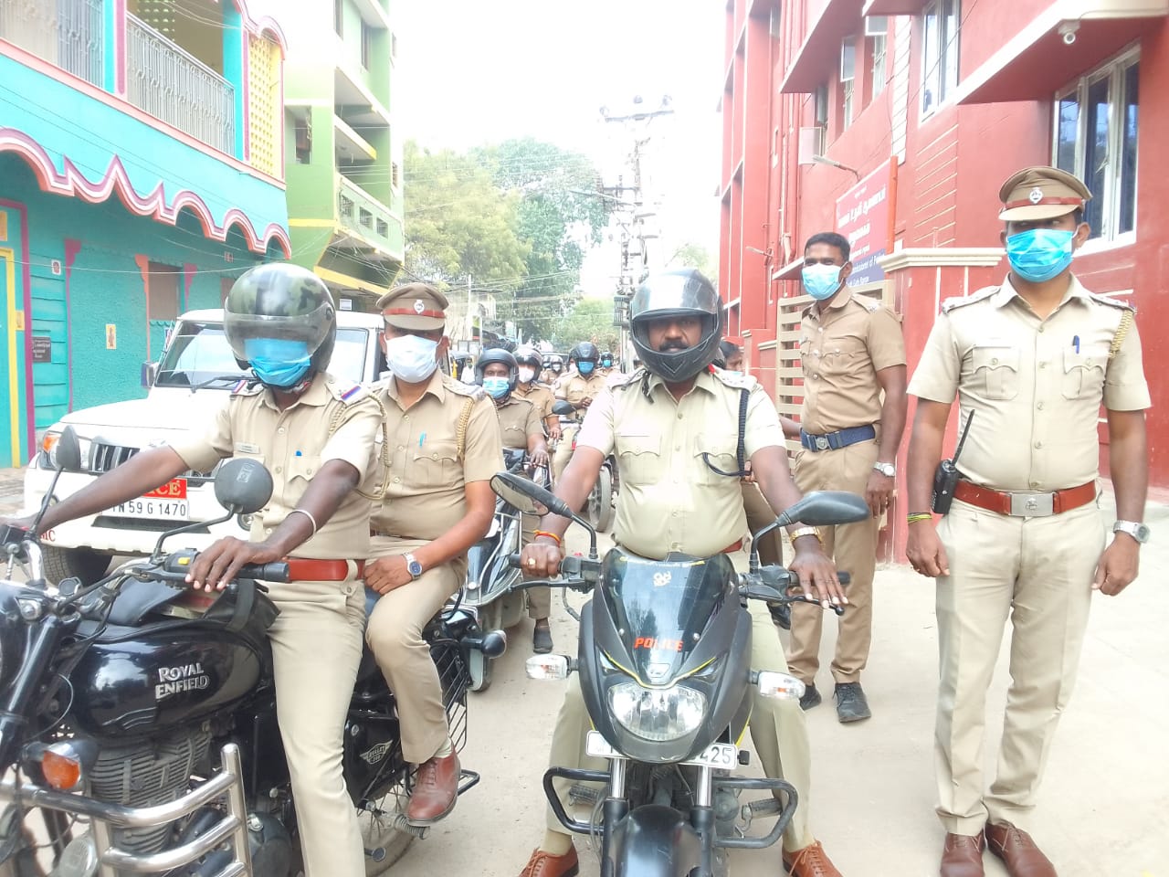 மதுரையில் போலீசார் அணிவகுப்பு.