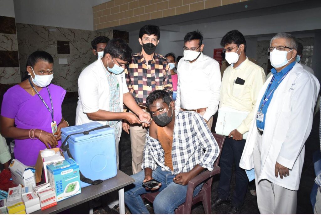 18 வயதிற்கு மேற்பட்டோர்க்கு மே மாதம் தொடங்கி 5.25 கோடி 90.78மூ அதே போல் இரண்டாம் தவணை 4.5 கோடி 70மூ தடுப்பூசியும் செலுத்தப்பட்டுள்ளது. பூஸ்டர் தடுப்பூசியினை முன்களப்பணியாளர்கள், சுகாதாரபணியாளர்கள் மற்றும் 60 வயதிற்கு மேற்பட்ட கூட்டு நோய் உள்ளவர்கள் 34 லட்சம் இலக்கு நிர்ணம் செய்யப்பட்டு அதில் தகுதியுடையோர் 7.17 லட்சம் நபர்களில் இதுவரை 4.82லட்சம் 67மூ பூஸ்டர் தடுப்பூசி போடப்பட்டுள்ளது. குறிப்பாக நாகப்பட்டினம் மாவட்டத்தை பொறுத்தவரை தடுப்பூசி போடப்படுவது தயக்கமுள்ள மாவட்டமாக இருந்ததை மாவட்ட நிர்வாகம் தடுப்பூசி போடும் அவசியத்தை உணர்த்தி தொடர்ந்து வலியுறுத்தியதால் இதுவரை 84 சதவீதம் முதல் தவணையும் 75சதவீதமும் இரண்டாம் தவணை தடுப்பூசி செலுத்தப்பட்டுள்ளது. நம் மாவட்டத்தில் பொதுவாக 15 வயது முதல் 18 வயது வரை உள்ள மாணவச் செல்வங்கள் முதல் தவணை சுமார் 76மூ தடுப்பூசி செலுத்தப்பட்டது தமிழ்நாடு மாநிலசராசரி அளவில் முதல் இடமாகும்.