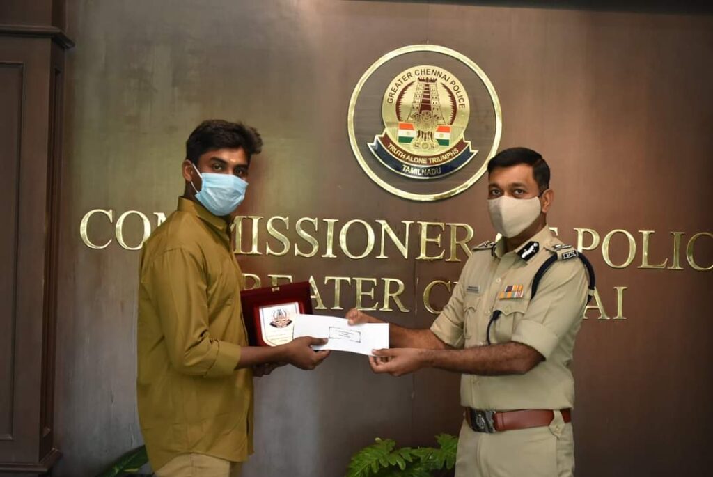 பயணி ஆட்டோவில் தவறவிட்ட 50 சவரன் அடங்கிய கைப்பையை நேர்மையாக உரிமையாளரிடம் ஒப்படைத்து சமுதாயத்தில் சிறந்த குடிமகனாக செயல்பட்ட ஆட்டோ ஓட்டுநர் சரவணக்குமாரை குடும்பத்தினருடன் சென்னை பெருநகர போலீஸ் கமிஷ்னர் மகேஷ்குமார் அகர்வால்நேரில் அழைத்து கேடயம் மற்றும் வெகுமதி வழங்கி பாராட்டி கௌரவித்தார்.
