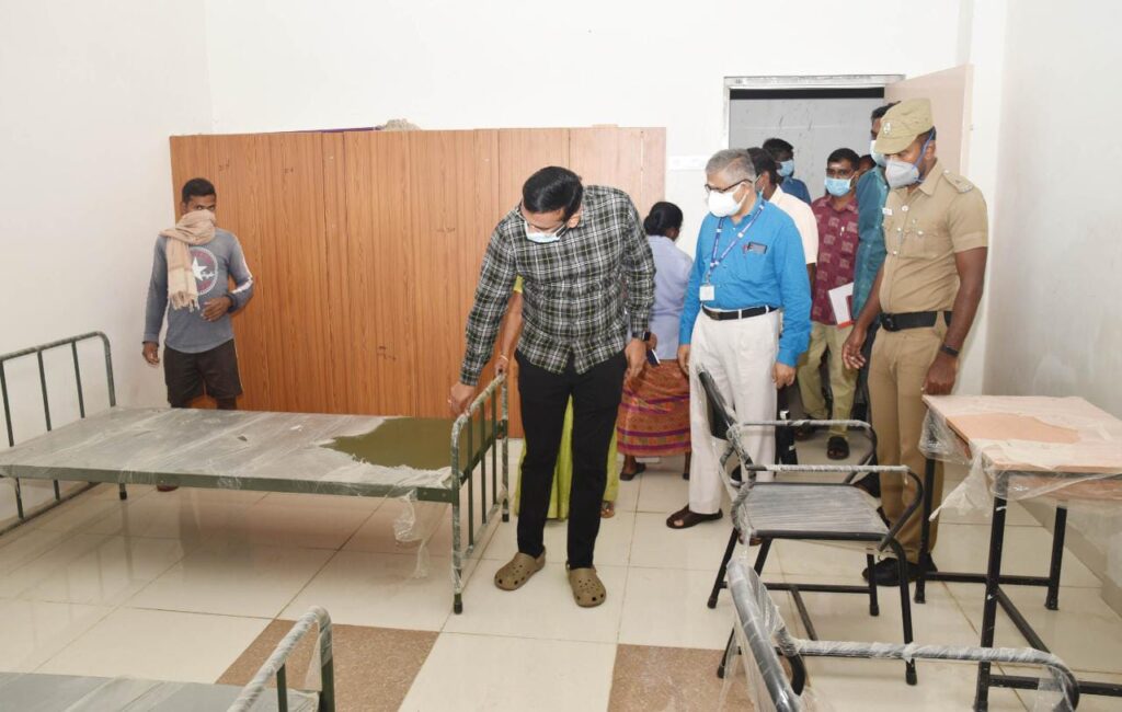 நாகப்பட்டினம் மாவட்டம் ஒரத்தூரில் உள்ள அரசு மருத்துவக்கல்லூரி மருத்துவமனையில் நேரடி வகுப்புகள் தொடங்கபட உள்ளதை முன்னிட்டு மருத்துவம் பயில வரும் மாணவ மாணவிகள் தங்குவதற்கு ஏதுவாக அமைக்கப்பட்டுள்ள தங்கும் விடுதியில், தங்கும் அறைகள், உடற்பயிற்சி கூடம், சமையல் கூடம், பார்வையாளர் கூடம், கழிப்பறை மற்றும் குளியலறை போன்ற அடிப்படை வசதிகளை மாவட்ட ஆட்சியர் டாக்டர் அருண்தம்புராஜ் நேரில் பார்வையிட்டு ஆய்வு செய்தார். மருத்துவக் கல்லூரி மருத்துவமனை முதல்வர் மரு விஸ்வநாதன், செயற்பொறியாளர் (மருத்துவப்பணிகள்) ஹேமலதா ஆகியோர் உடன் உள்ளனர்.