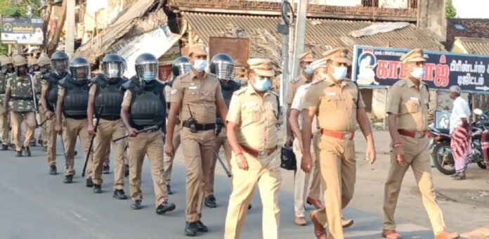 பிப்ரவரி மாதம் 19ம் தேதி நடைபெற உள்ள உள்ளாட்சி தேர்தலை முன்னிட்டு காவல்துறையினர் கொடி அணிவகுப்பு பதட்டமான பகுதிகளில், பொதுமக்கள் அச்சமின்றி அவர்களது ஜனநாயக கடமையாற்றுவதற்கும், அமைதியான முறையில் தேர்தலை நடத்துவதற்கு இந்த கொடி அணிவகுப்பு நடத்தப்பட்டது.