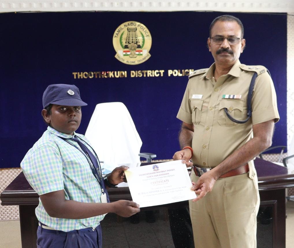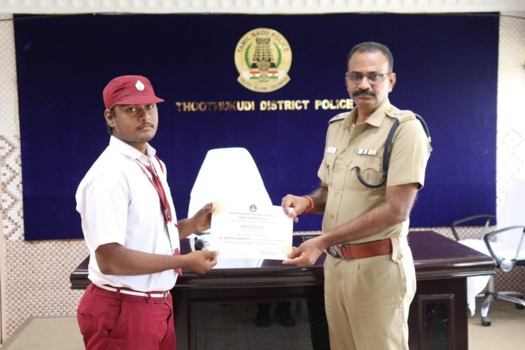 அவ்வாறு சிறப்பாக பணியாற்றிய தூத்துக்குடி ஸ்டார் மெட்ரிக்குலேஷன் பள்ளியை சேர்ந்த மாணவர்கள் பிரதீப் ராஜ், சக்தி கணேஷ், ஹரிஹரன், ஆரிப், இசக்கி பாண்டி, பேச்சிமுத்து, விக்னேஷ் பிரபு, உதயகுமார் அரவிந்த், கார்த்திக் ஸ்ரீராம், கிரசன்ட் மெட்ரிகுலேஷன் பள்ளியைச் சேர்ந்த மாணவர்கள் விஷால், பாலஅபிஷேக், சதாசிவம் உட்பட 16 பேருக்கு தூத்துக்குடி மாவட்ட காவல் அலுவலகத்தில் வைத்து இன்று (01.03.2022) மாவட்ட காவல் கண்காணிப்பாளர் திரு. எஸ். ஜெயக்குமார் அவர்கள் காவல்துறை சார்பாக சான்றிதழ் வழங்கி பாராட்டினார்.*