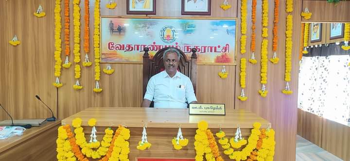 நகர்ப்புற உள்ளாட்சி தேர்தல் _ வேதாரண்யம் நகராட்சியில் திமுகவை சேர்ந்த மா. மீ.புகழேந்தி நகராட்சித் தலைவராக ஒருமனதாக தேர்வு.