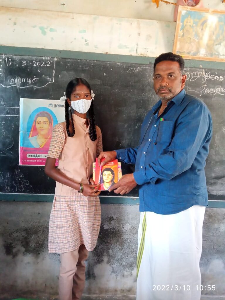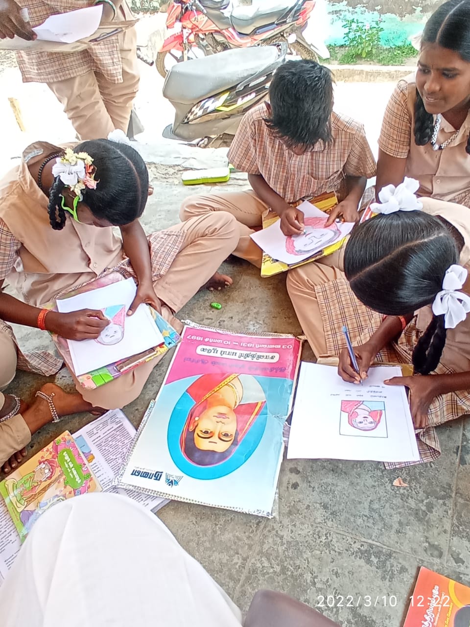 மாணவ மாணவிகள் பங்கெடுத்துக் கொண்டு சாவித்திரிபாய் புலேயின் கல்விச் சேவை பற்றி பேசினர். சாவித்ரிபாய் புலேயின் உருவத்தை வரைந்தனர்.
