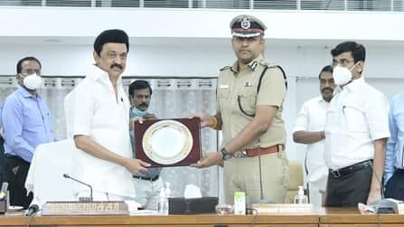 மதுரை மாநகர காவல் ஆணையருக்கு இன்று முதல்வர் ஸ்டாலின் விருது வழங்கினார் .