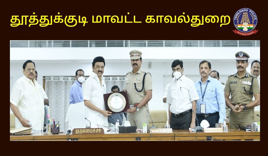 மாண்புமிகு தமிழக முதல்வர் அவர்கள் தலைமையில் சென்னையில் நடைபெற்று வரும் மாவட்ட ஆட்சியர்கள் மற்றும் மாவட்ட காவல் கண்காணிப்பாளர்கள் மாநாட்டில், போதைப் பொருளுக்கு எதிரான சிறப்பு நடவடிக்கை மேற்கொண்டமைக்காக தூத்துக்குடி மாவட்ட காவல்துறையை பாராட்டி தூத்துக்குடி மாவட்ட காவல் கண்காணிப்பாளர் அவர்களுக்கு மாண்புமிகு தமிழக முதல்வர் அவர்கள் விருது வழங்கி சிறப்பித்தார்.