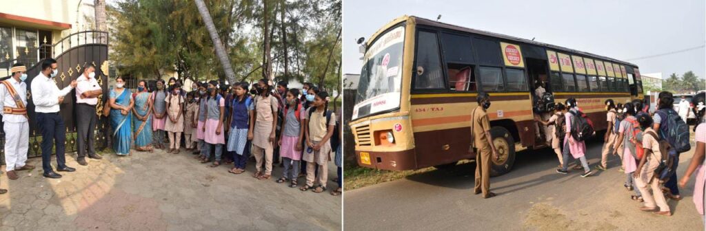 மேலும் நாகை அன்னை சத்யா காப்பகத்தில் உள்ள மாணவ, மாணவிகளின் கோரிக்கையை ஏற்று பள்ளி சென்று வர பேருந்து வசதியை துவக்கி வைத்தார்.