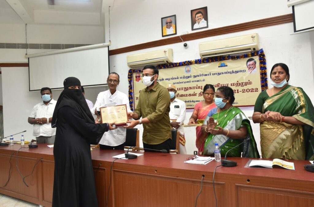 தேசிய நுகர்வோர் பாதுகாப்பு தினம் மற்றும் உலக நுகர்வோர் தின விழாவில் பள்ளி கல்லூரி மாணவ மாணவிகள் கலந்து கொண்டனர். இவ்விழா குறித்து பொதுமக்களிடையே விழிப்புணர்வு ஏற்படுத்தும் வகையில் உணவு பாதுகாப்பு மற்றும் தரக்கட்டுப்பாட்டு சட்டம் – சட்ட விதிமீறல்கள் கண்டறியும் போட்டி, உணவுப்பொருள் வீணாவதை தடுத்தல் (அ) தவிர்த்தல், தவறான விளம்பரங்களால் பொதுமக்களாகிய நுகர்வோருக்கு ஏற்படும் பாதிப்பிலிருந்து காத்துக்கொள்ளும் வழிமுறைகள் குறித்த தலைப்புகளை மையமாக கொண்டு ஓவியப்போட்டி, பேச்சுப்போட்டி மற்றும் கட்டுரைப்போட்டிகள் பள்ளி, கல்லூரி அளவில் நடத்தப்பட்டு ஒவ்வொரு போட்டிக்கும் தலா 3 பேர் வீதம் வெற்றி பெற்ற 18 மாணவ மாணவிகளுக்கு மாவட்டஆட்சியர் கேடயம் மற்றும் போட்டியில் பங்கேற்ற அனைத்து மாணவ மாணவிகளுக்கும் சான்றிதழ்களையும் வழங்கினார்.