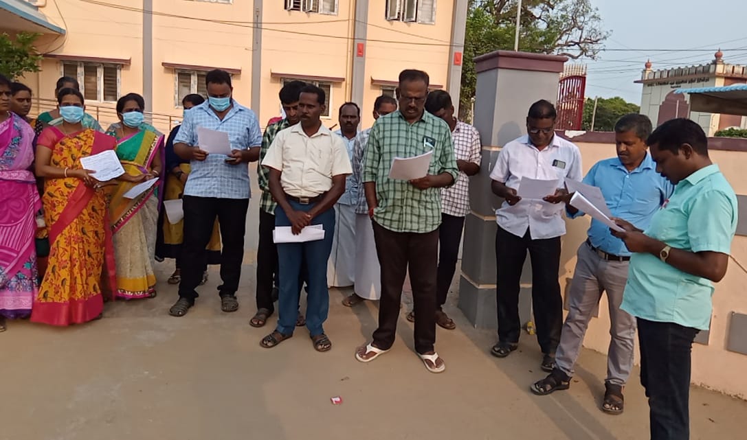 வருவாய்த் துறை அலுவலர்களின் நியாயமான பத்து அம்ச கோரிக்கைகள் மீது மாண்புமிகு தமிழக முதல்வர் அவர்களின் கவனத்தை ஈர்க்கும் விதமாக வருவாய்த்துறை அலுவலர்கள் ஒரு மணி நேரம் முன்னதாக வெளிநடப்பு செய்து இந்த ஆர்ப்பாட்டத்தை நடத்தினர். இந்த ஆர்ப்பாட்டத்தை வருவாய்த்துறை அலுவலர் சங்க வட்ட தலைவர் உதயகுமார் தலைமையில் மாவட்ட செயற்குழு உறுப்பினர் R.பாஸ்கரன் மாவட்ட செயற்குழு உறுப்பினர் (புறநகர்) தமிழ்ச்செல்வன் மாவட்ட செயற்குழு உறுப்பினர் ராஜா மற்றும் வருவாய் கோட்டாட்சியர் ஊழியர்கள் வட்டாட்சியர் ஊழியர்கள் ஆகியோர் கலந்து கொண்டனர்.