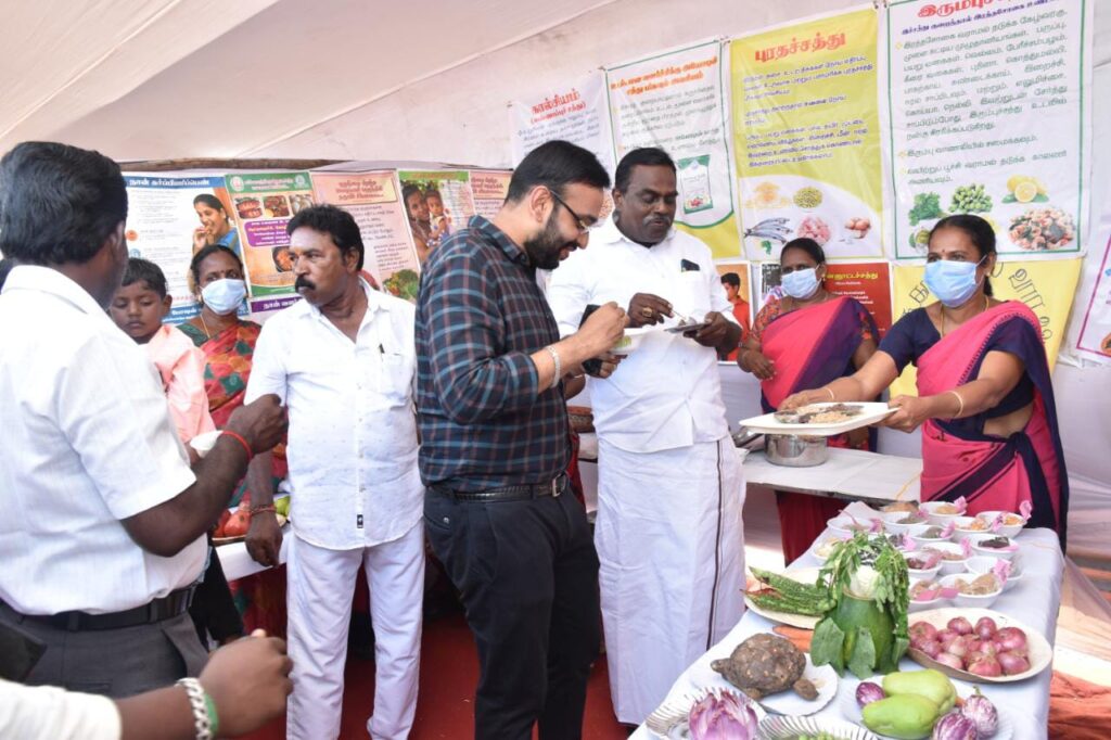மேலும், மீன்வளபல்கலைக்கழகம், சமூகநலன், ஒருங்கிணைந்த குழந்தைகள் வளர்ச்சி திட்டத்தில் பாரம்பரிய ஊட்டச்சத்து நிறைந்த இயற்கை உணவு அரங்கம், தோட்டக்கலை, மகளிர் திட்டம், ஊரக புத்தாக்க திட்டம், உணவு பாதுகாப்புத்துறை சார்பில் உணவு பொருட்களின் தரம் குறித்த விழிப்புணர்வு அரங்கம், காவல்துறை, போக்குவரத்து துறை, வேலைவாய்ப்புதுறை, கல்விதுறை, சுகாதாரத் துறை, மாசுகட்டுப்பாட்டு வாரியம், ஊரக சுய வேலைவாய்ப்பு பயிற்சி நிறுவனம், உழவர் உற்பத்தியாளர் நிறுவனம், கூட்டுறவு கைத்தறி துணிநூல் சார்பில் உற்பத்தி பொருட்கள் விற்பனை அரங்குகள், வேளாண் பொறியியல், வணிகம் போன்ற பல்வேறு துறைகளில் அரசின் திட்டங்களை வெளிப்படுத்தும் மற்றும் செயல்படுத்தப்படும் சாதனைகள் குறித்த கண்காட்சி அரங்குகளை மாவட்டஆட்சியர் தொடங்கி வைத்து பார்வையிட்டார்.