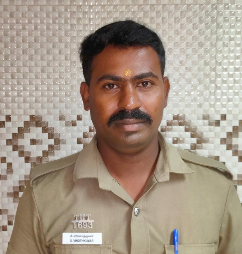 என்னுடைய பெயர் வினோத்குமார், நான் தூத்துக்குடி வடபாகம் காவல் நிலையத்தில் நான் இரண்டாம் நிலைக் காவலராக பணிபுரிந்து வருகிறேன்.