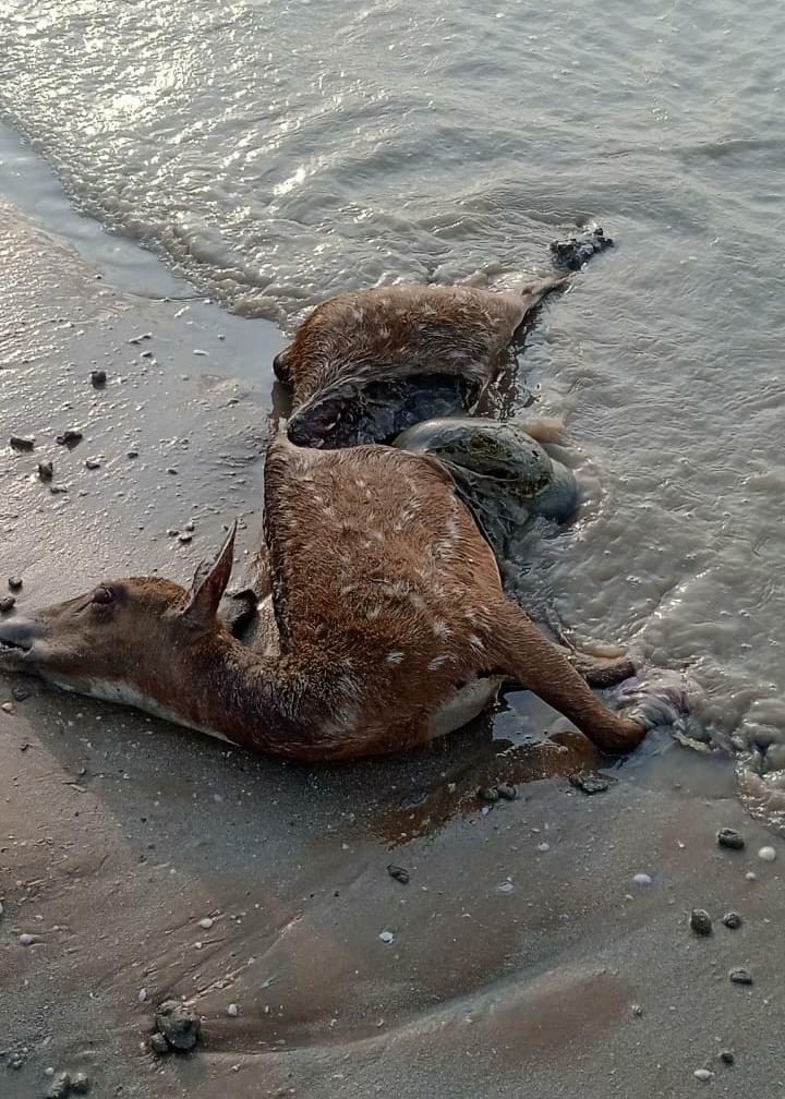 இன்று காலை மீன்பிடி படகு துறைமுகத்தில் இருந்து 5 கிலோமீட்டர் மேற்கே மன வாய்க்கால் ஆற்றுக்கு அருகே பெண் புள்ளிமான் ஒன்று கடற்கரையோரத்தில் குடல் வெளிவந்த நிலையில் இறந்து காணப்பட்டது. அப்பகுதி வழியே கரையோர மீன் பிடிப்பிற்கு சென்ற மீனவர்கள் வனத்துறைக்கு தகவல் தெரிவித்தனர். வனச்சரகர் அயூப்கான் தலைமையிலான வனத்துறையினர் பெண் புள்ளிமானை உடற்கூறாய்வு சோதனைக்கு உட்படுத்தி விசாரணை மேற்கொண்டு வருகின்றனர்.