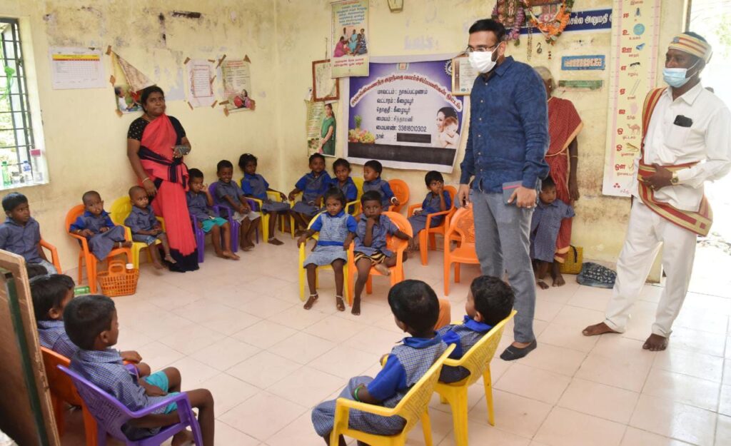 கீழையூர் ஊராட்சி ஒன்றியத்திற்குட்பட்ட கீழபிடாகை ஊராட்சியில் உள்ள ஊராட்சி மன்ற அலுவலகத்தில் கிராம ஊராட்சியில் நடைபெறும் மகாத்மாகாந்தி தேசிய ஊரக வேலைவாய்ப்பு உறுதிதிட்டத்தின் கீழ் அளிக்கப்படும் பணிகள் மற்றும் பிரதம மந்திரி வீடு கட்டும் திட்டத்தின் கீழ் வழங்கப்பட்டுள்ள வீடுகளின் விவரம் குறித்த கோப்புகளையும், ஒருங்கிணைந்த குழந்தை வளர்ச்சி திட்டத்தின் கீழ் செயல்பட்டு வரும் அங்கன்வாடி மையத்தினையும், அங்குள்ள குழந்தைகளுக்கு இனிப்பு வழங்கினார். பின்னர் குழந்தைகளுக்கு சத்துணவு தயார் செய்யப்படுவதையும், பிரதம மந்திரி வீடு கட்டும் திட்டத்தின் கீழ் நடைபெற்று வரும் வீடு கட்டும் கட்டுமான பணிகளையும் பார்வையிட்டு ஆய்வுசெய்தார்.
