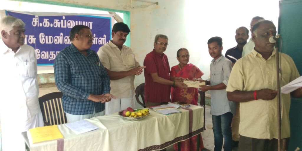 பள்ளி தலைமையாசிரியர் சி. அன்பழகன் தலைமை வகித்தார். பள்ளியின் பெற்றோர் ஆசிரியர் கழக துணைத் தலைவர் எஸ். எஸ். தென்னரசு முன்னிலை வகித்து வாழ்த்துரை வழங்கினார் . சி.நாகராஜன் வரவேற்புரையுடன் அறக்கட்டளைகள் அறிமுக உரை நிகழ்த்தினார். சி.க.சுப்பையா பிள்ளை அறக்கட்டளை நிறுவனர் மாரியப்பன் 2020 மற்றும் 2021 ஆகிய இரு ஆண்டுகளில் பொதுத்தேர்வுகளில் சிறந்த மதிப்பெண் பெற்ற எட்டு மாணவர்களுக்கு ரூபாய் ஒரு லட்சத்து 5 ஆயிரம் ரூபாயை கல்வி உதவித் தொகையாக வழங்கி வாழ்த்துரை வழங்கினார்.