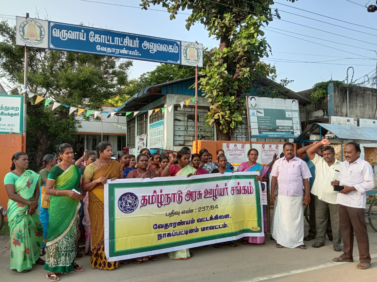 நாகை மாவட்டம் வேதாரண்யம் கோட்டாட்சியர் அலுவலகம் முன்பு தமிழ்நாடு அரசு ஊழியர் சங்கம் சார்பாக கவன ஈர்ப்பு ஆர்ப்பாட்டம் நடைபெற்றது.