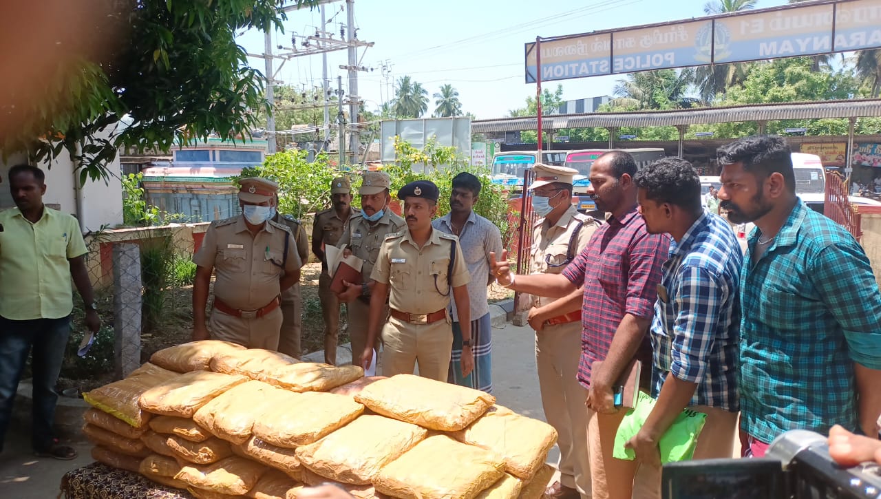 வேதாரண்யத்தில் 37 லட்சம் ரூபாய் மதிப்பிலான 147 கிலோ கஞ்சா பறிமுதல் – 4 பேர் கைது .