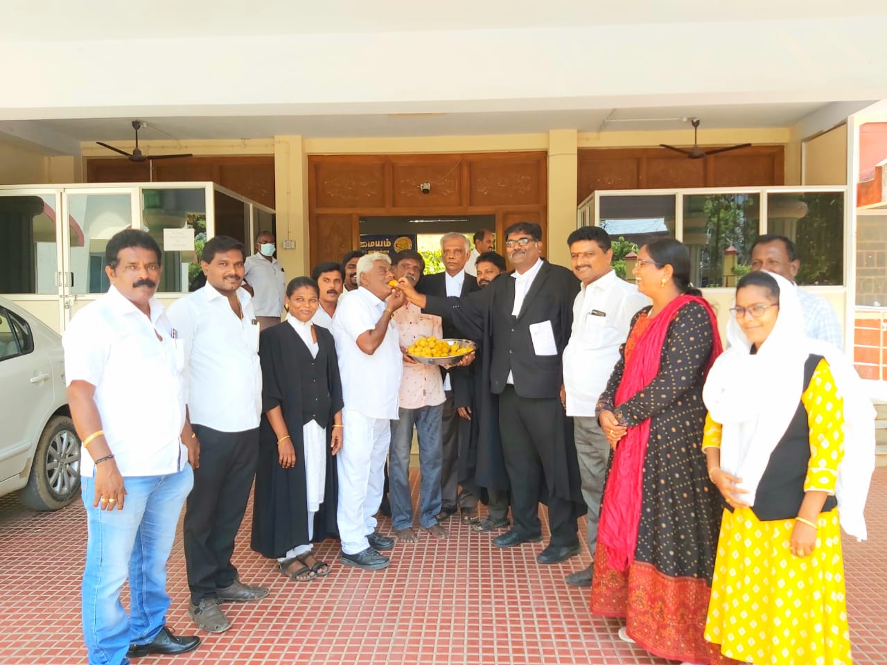 தூத்துக்குடி மாவட்ட நீதிமன்ற வளாகத்தில் அரசு வழக்கறிஞர் மோகன்தாஸ் சாமுவேல் தலைமையில் இனிப்பு வழங்கி கொண்டாட்டம்!!
