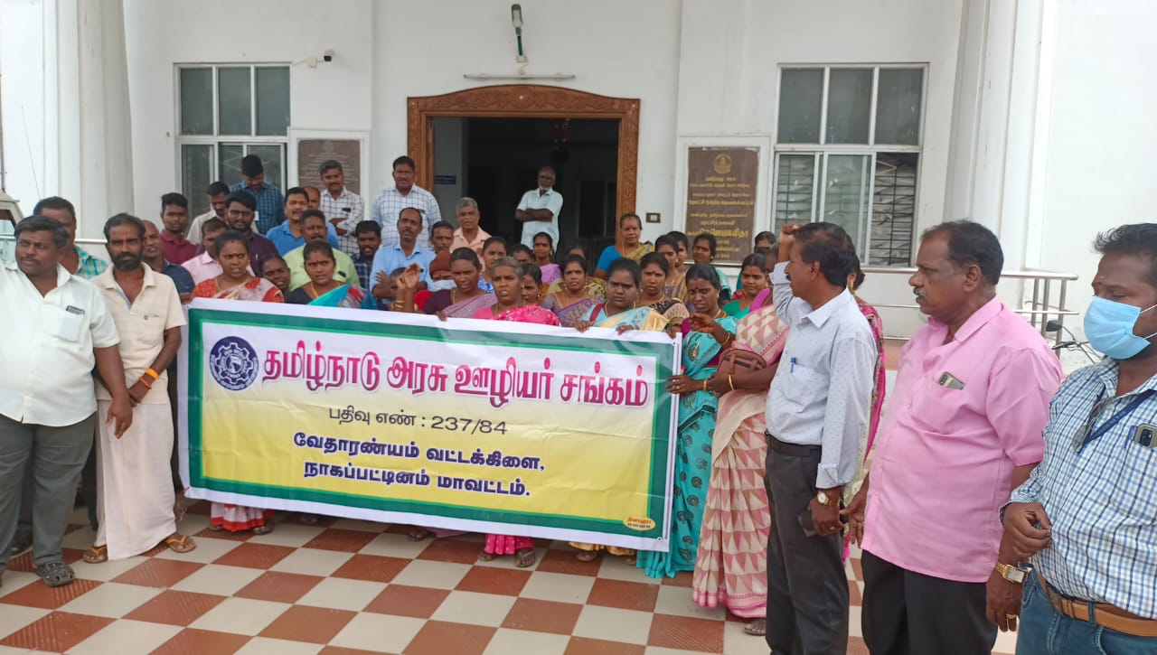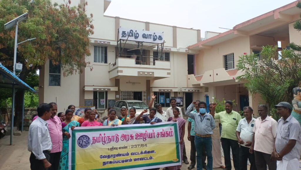 வேதாரண்யத்தில் தமிழ்நாடு அரசு ஊழியர் சங்கம் கண்டன ஆர்ப்பாட்டம் வேதாரணியம் மே 09