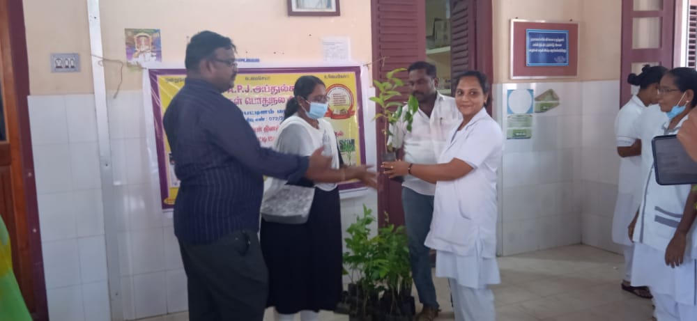 நாகப்பட்டினம் மாவட்டம் வேதாரண்யத்தில் உலக செவிலியர் தினம் நேற்று 12 .5 .2022 அன்று வேதாரண்யம் அரசு மருத்துவமனை , கரியாப்பட்டினம் அரசு மருத்துவமனை , வேதாரணியம் சரவணா பல் மருத்துவமனை திருத்துறைப்பூண்டி பிரசன்னா பல் மருத்துவமனை மற்றும் வேதாரண்யத்தை சுற்றி உள்ள தனியார் மருத்துவமனையில் பணிபுரியும் அனைத்து செவிலியர்களுக்கு ஏபிஜே அப்துல் கலாம் மக்கள் பொதுநல அமைப்பு நாகப்பட்டினம் மாவட்ட ஒருங்கிணைப்பாளர் ஆனந்த் மரக்கன்றுகளை வழங்கி அனைத்து செவிலியர்களுக்கும் செவிலியர்கள் தின வாழ்த்துக்களை தெரிவித்துக் கொண்டார்.