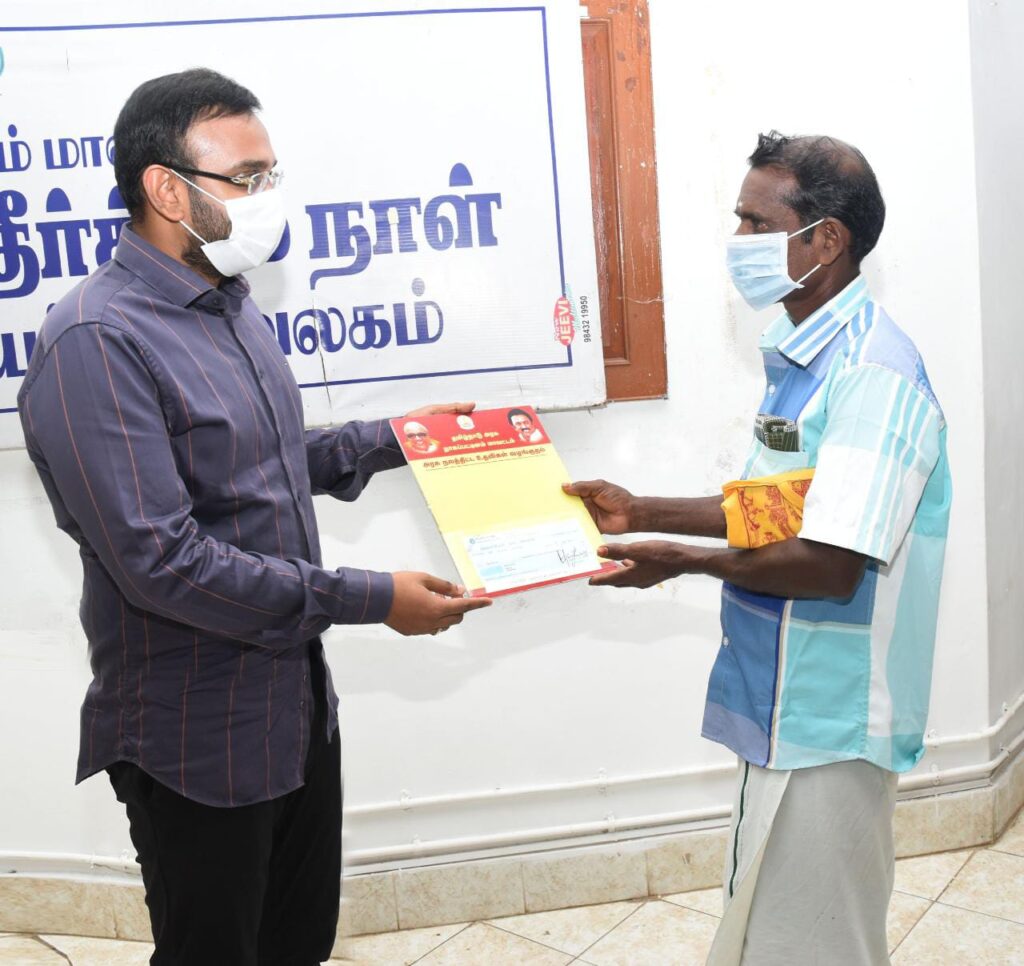 அதனைத் தொடர்ந்து வேதாரண்யம் வட்டம், செட்டிப்புலம் கிராமத்தைச் சேர்ந்த அமுதா மகள் மதியழகி என்பவர் பாம்பு கடித்து இறந்தமைக்காக அவரது தாயாருக்கு முதலமைச்சரின் பொது நிவாரண நிதியிலிருந்து ரூ.1லட்சத்திற்கான காசோலையையும், வேதாரண்யம் வட்டம் ஆதனூர் கிராமத்தைச் சேர்ந்த கிருஷ்ணமூர்த்தி என்பவரின் தாயார் அஞ்சம்மாள் என்பவர் தீ விபத்தில் இறந்தமைக்காக அவரது மகனுக்கு முதலமைச்சரின் பொது நிவாரண நிதியிலிருந்து ரூ.1 லட்சத்திற்கான காசோலையையும் மாவட்ட ஆட்சியர் டாக்டர் அருண்தம்புராஜ் வழங்கினார்.