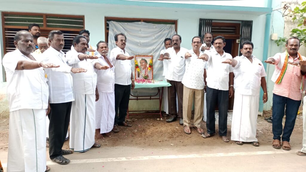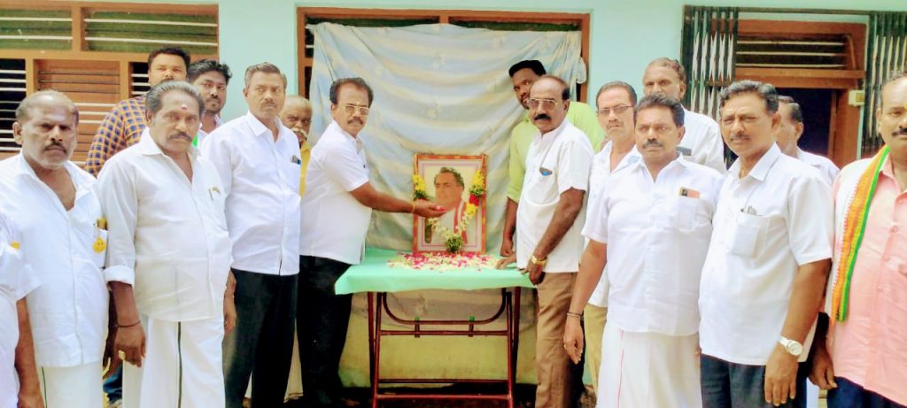 திரு உருவ படத்திற்கு மாவட்ட தலைவர் சி. எஸ். முரளிதரன் மாலை அணிவித்து மலர் தூவி பயங்கரவாத உறுதிமொழி எடுத்துக் கொண்டனர்.