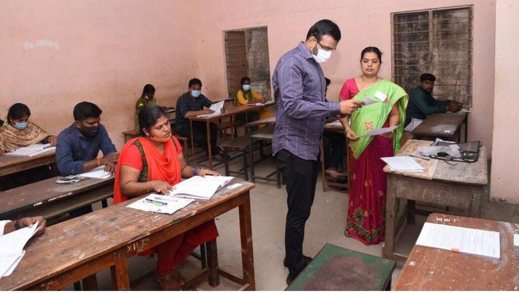 நாகையில் தமிழ்நாடு அரசு தோ்வாணைய தொகுதி-2க்கான தேர்வு நடைபெறும் மையங்களில் மாவட்ட ஆட்சியர் ஆய்வு