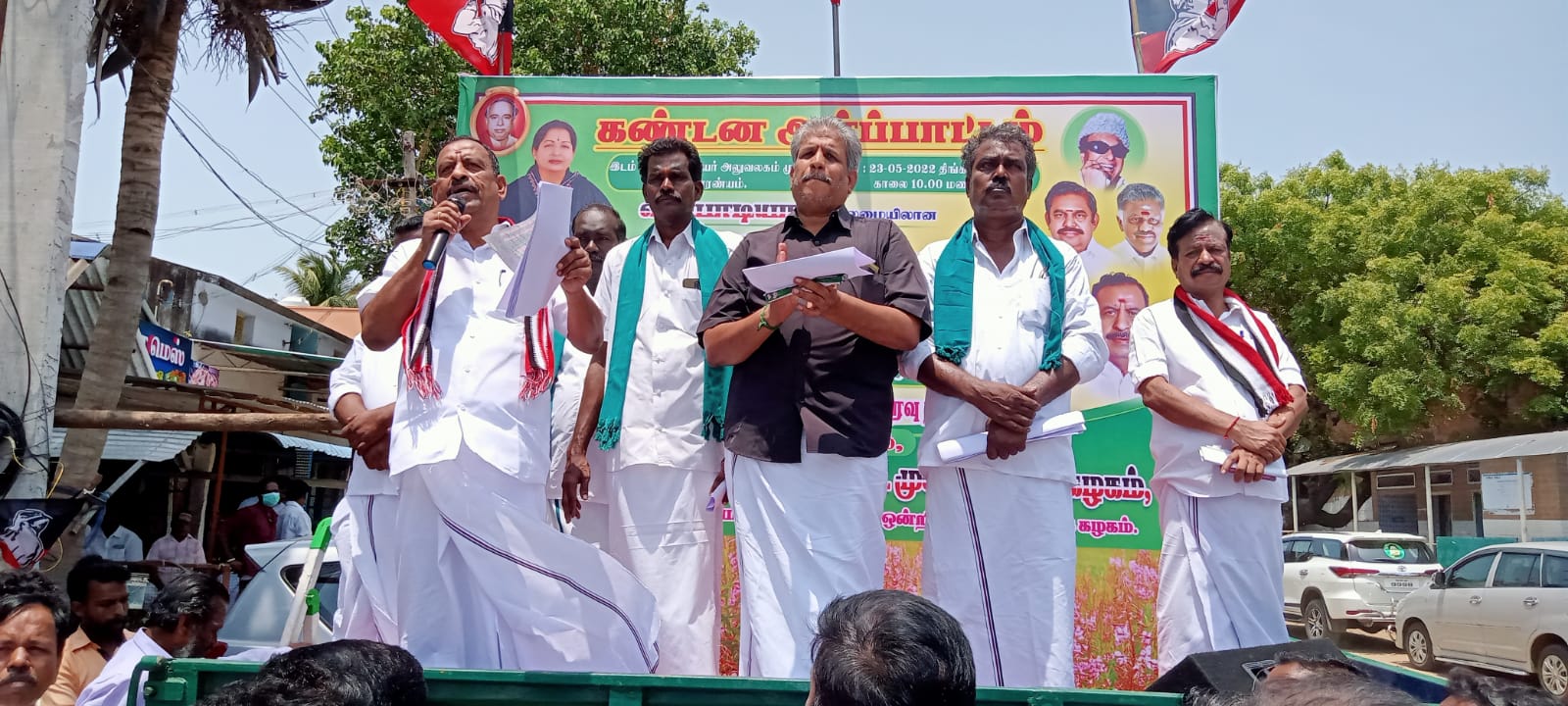 இந்த ஆர்ப்பாட்டத்தில் ஏராளமான அதிமுகவினர், விவசாயிகள் கலந்து கொண்டு கண்டன முழக்கங்களை எழுப்பினர்.