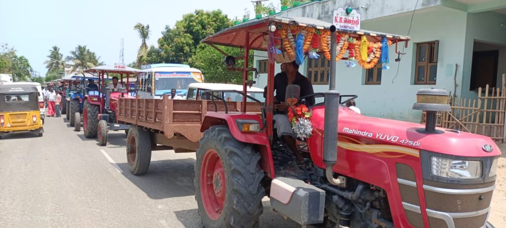 அவர்களை காவல்துறையினர் தடுத்து நிறுத்தி வாக்குவாதத்தில் ஈடுபட்டனர் பின்னர் ஆர்ப்பாட்டம் நடக்கும் இடத்திற்கு அருகே டிராக்டர்களை நிறுத்தி வைக்க அனுமதிக்கப்பட்டது.இந்த கண்டனஆர்ப்பாட்டத்தில் கிழக்கு ஓன்றிய கழக செயலாளர் கிரிதரன் மேற்கு ஒன்றிய கழக செயலாளர் சுப்பையன் வேதாரணியம் நகரச் செயலாளர் வக்கீல்