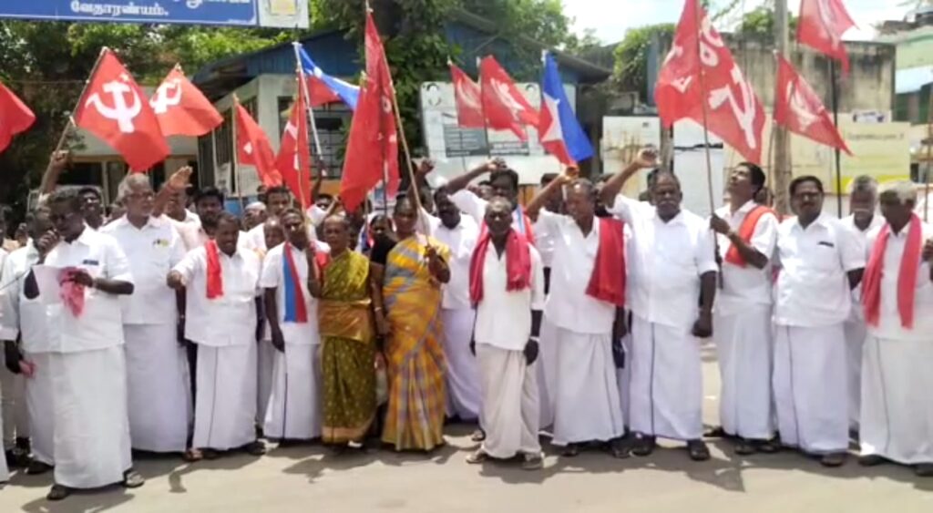 கண்டன ஆர்ப்பாட்டத்தை நடத்தினார்கள்.இந்த ஆர்ப்பாட்டத்தில் A.வேணு சிபிஐஎம் மாவட்ட செயற்குழு