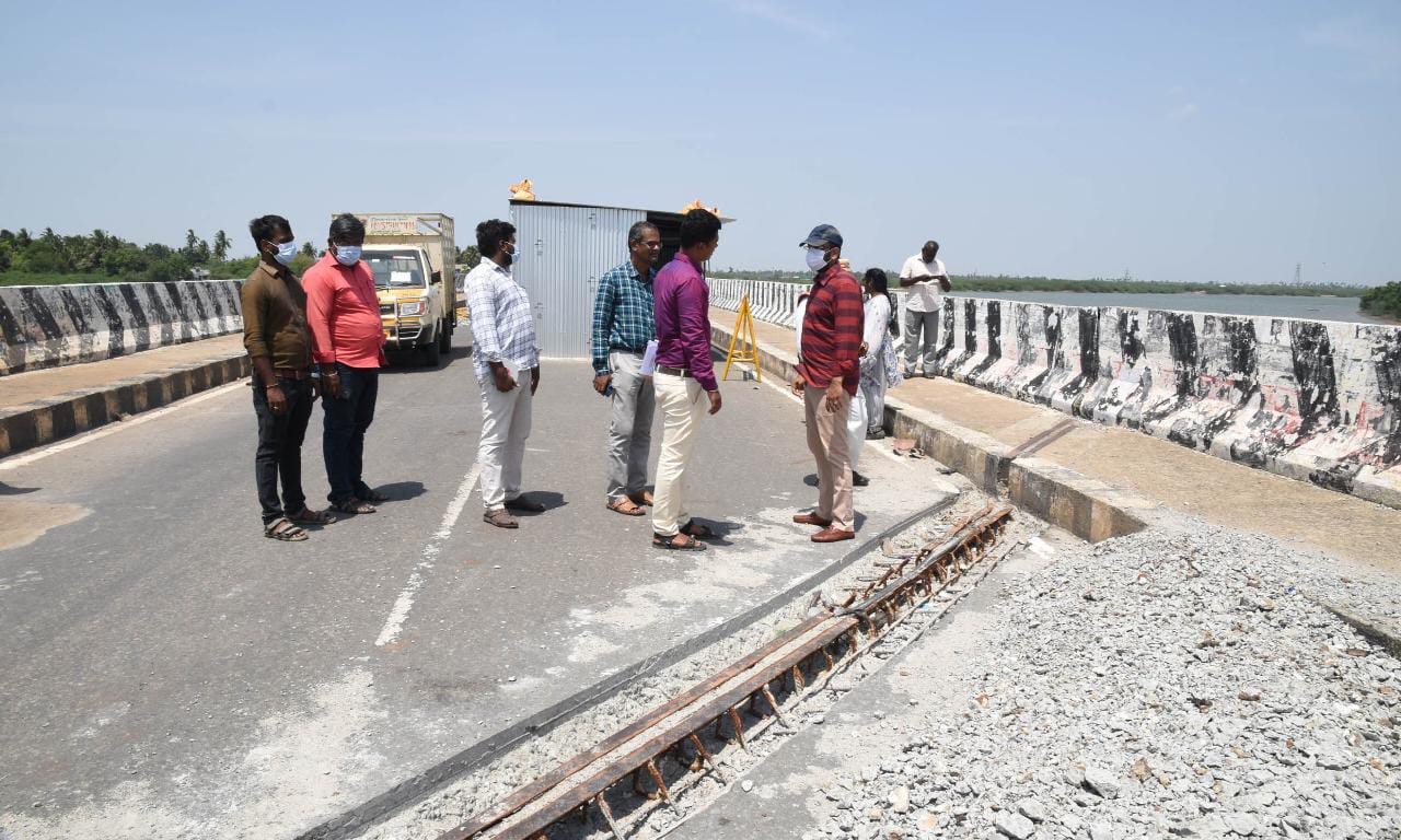 பணிகளையும், நாகூர் வெட்டாற்றுப்பாலம் சீரமைக்கும் பணியினையும்
