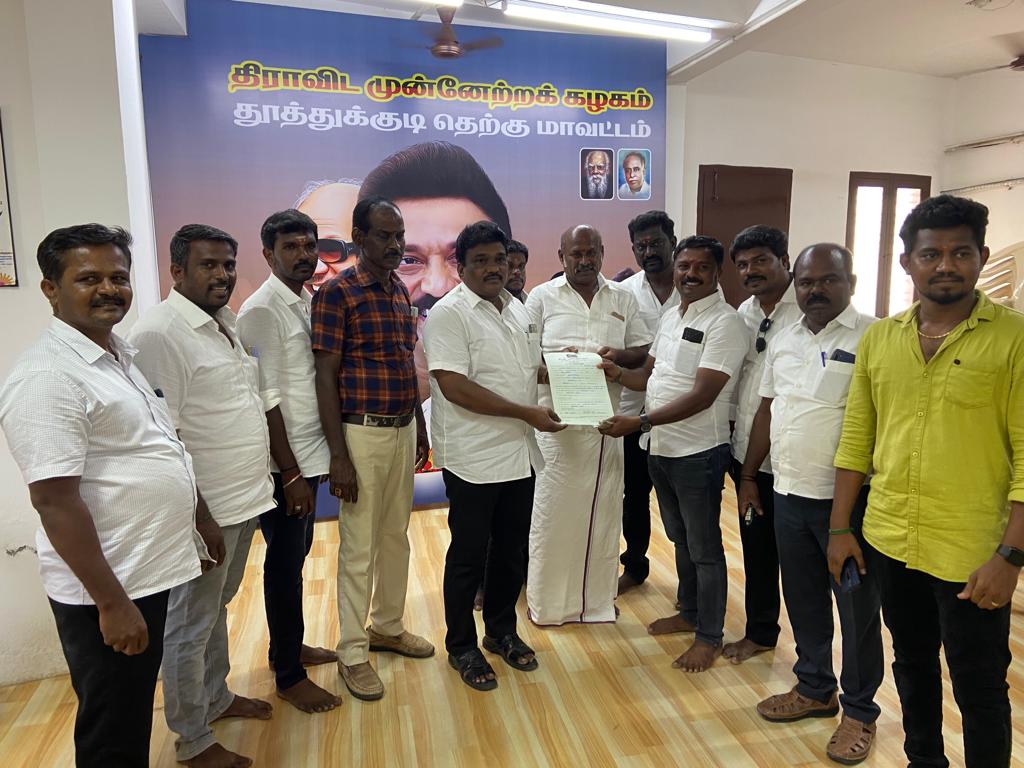 தூத்துக்குடி ஒன்றியம் கிழக்கு பகுதி செயலாளர் பதவிக்கு மாப்பிள்ளையூரணி ஊராட்சி மன்ற தலைவர் சரவணக்குமார் தேர்தல் அதிகாரியிடம் விருப்பமனு அளித்தார்.