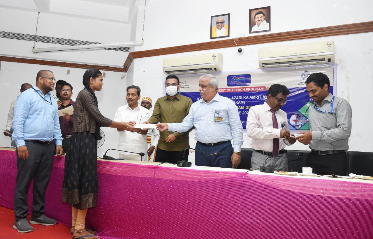 நாகப்பட்டினம் மாவட்டம் ஆட்சியர் அலுவலகத்தில் 75வது சுதந்திர தின விழாவை முன்னிட்டு சிறப்பு கடனுதவி வழங்கும் முகாம் நடந்தது. முகாமில் 112 பயனாளிகளுக்கு ரூ. 4 கோடியே 74 இலட்சம் மதிப்பீட்டில் பல்வேறு கடனுதவிகளை மாவட்ட ஆட்சியர் டாக்டர் அருண்தம்புராஜ் வழங்கினார். கீழ்வேளுர் எம்.எல.ஏ நாகை மாலி, இந்தியன் ஓவர்சீஸ் வங்கியின் மண்டலமேலாளர் ஸ்ரீராம் மற்றும் இந்தியன் வங்கியின் மண்டல மேலாளர் குமார் ஆகியோர் முன்னிலை வகித்தனர்.