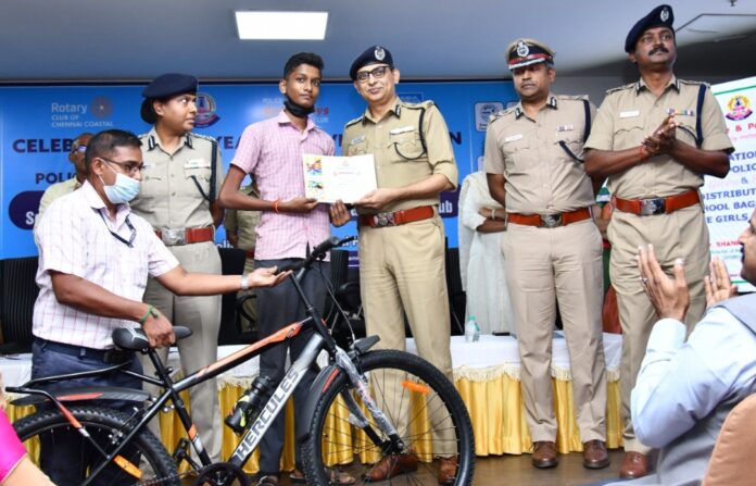முன்னிட்டு இன்று சென்னை பெருநகர காவல் ஆணையரக 2வது தனத்தில் உள்ள கலந்தாய்வு கூடத்தில் நடைபெற்ற விழாவில் சென்னை பெருநகர காவல் ஆணையாளர்.சங்கர் ஜிவால். இ.கா.ப. கலந்து கொண்டு கண் பரிசோதனை முகாமில் பரிந்துரைக்கப்பட்ட காவல் சிறார் மன்றத்தைச் சேர்ந்த 39 சிலுவர், சிறுமியர்களுக்கு மூக்கு கண்ணடிகள் வழங்கினார். மேலும், சமீபத்தில் நடைபெற்ற ஒளிய போட்டியில் வெற்றி பெற்ற சிறுவர், சிறுமியர்களுக்கு சைக்கிள்கள் மற்றும் காவல் சிறார் மன்றத்தைச் சேர்ந்த சிறுவர், சிறுமியர்களுக்கு 1,000 புத்தக பைகளை வழங்கி பாராட்டினார்.