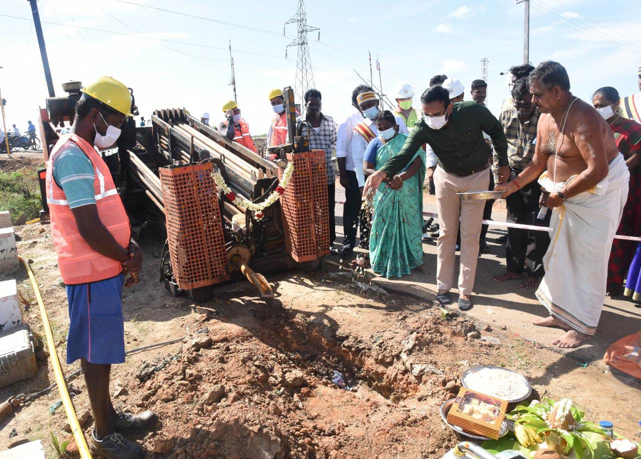 அதிவேக அலைக்கற்றை வழக்குதல் பணிக்கான பூமி பூஜை – மாவட்ட ஆட்சியா் அருண்தம்புராஜ் தொடங்கி வைத்தார்
