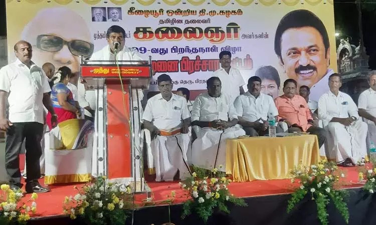 வேளாங்கண்ணி அருகே தி.மு.க. தெருமுனை பிரசார கூட்டம் நடந்தது. நாகப்பட்டினம் வேளாங்கண்ணி: வேளாங்கண்ணி அருகே கீழையூர் ஒன்றிய தி.மு.க சார்பில் முன்னாள் முதல்-அமைச்சர் கருணாநிதி பிறந்தநாளையொட்டி தெருமுனை பிரசார கூட்டம் பிரதாபராமபுரத்தில் நடந்தது. கூட்டத்திற்கு கீழையூர் ஒன்றிய செயலாளர் தாமஸ் ஆல்வா எடிசன் தலைமை தாங்கினார். இதில் மாவட்ட பொறுப்பாளர் கவுதமன் , தலைமை கழக பேச்சாளர் கரூர் முரளி ஆகியோர் கலந்துகொண்டு தி.மு.க. அரசின் ஓராண்டு சாதனை குறித்து பேசினர். முன்னதாக ஊராட்சி செயலாளர் கணபதி வரவேற்றார். இதில் முன்னாள் ஒன்றியக்குழு தலைவர் ஞானசேகரன், ஒன்றியக்குழு துணை தலைவர் சவுரிராஜ், வேளாங்கண்ணி பேருர் கழக பொறுப்பாளர் மரியசார்லஸ் உள்பட தி.மு.க.வினர் பலர் கலந்து கொண்டனர்.