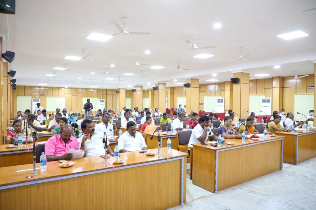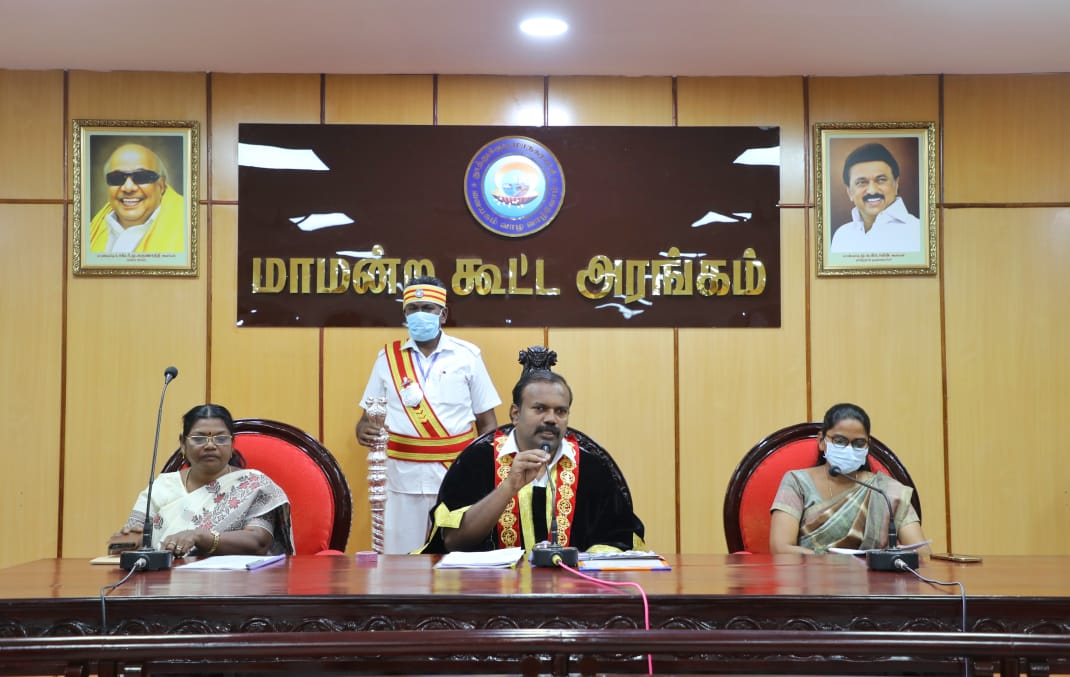 தூத்துக்குடி மாநகராட்சி கூட்டம் மேயர் ஜெகன் பெரியசாமி தலைமையில் துணைமேயர் ஜெனிட்டா ஆணையர் சாருஸ்ரீ ஆகியோர் முன்னிலையில் மாநகராட்சி கூட்ட அரங்கில் நடைபெற்றது.
