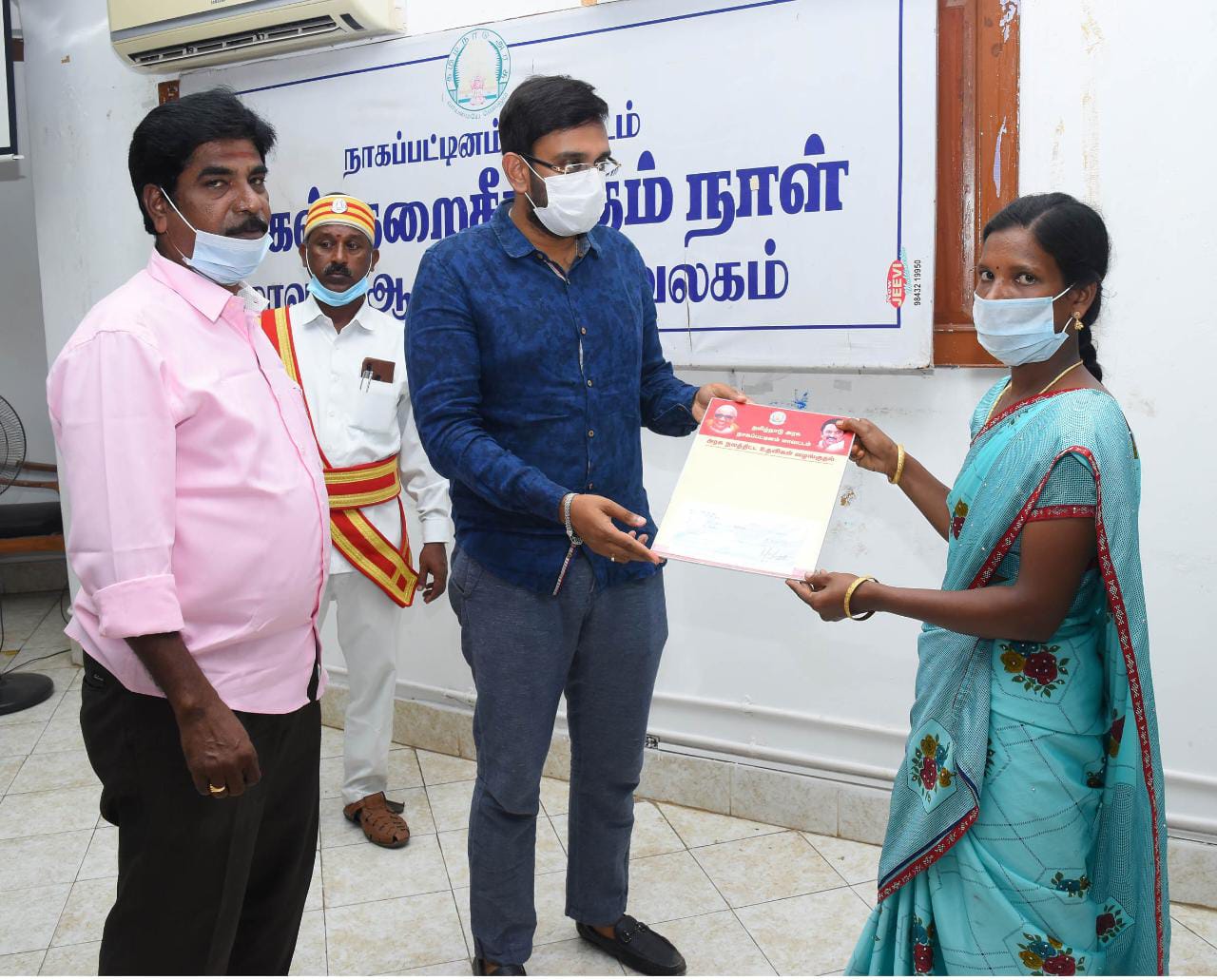 மேலும், நாகப்பட்டினம் வட்டம் சிக்கல் கிராமத்தைச் சேர்ந்த சிவரஞ்சனி என்பவரின் கணவர் பார்த்திபன் நீரில் மூழ்கி உயிரிழந்தமைக்காக முதலமைச்சர் பொது நிவாரணநிதியிலிருந்து ரூ.1,00,000-த்திற்கான காசோலை மாவட்ட ஆட்சித்தலைவர் அ.அருண்தம்புராஜ் வழங்கினார்.