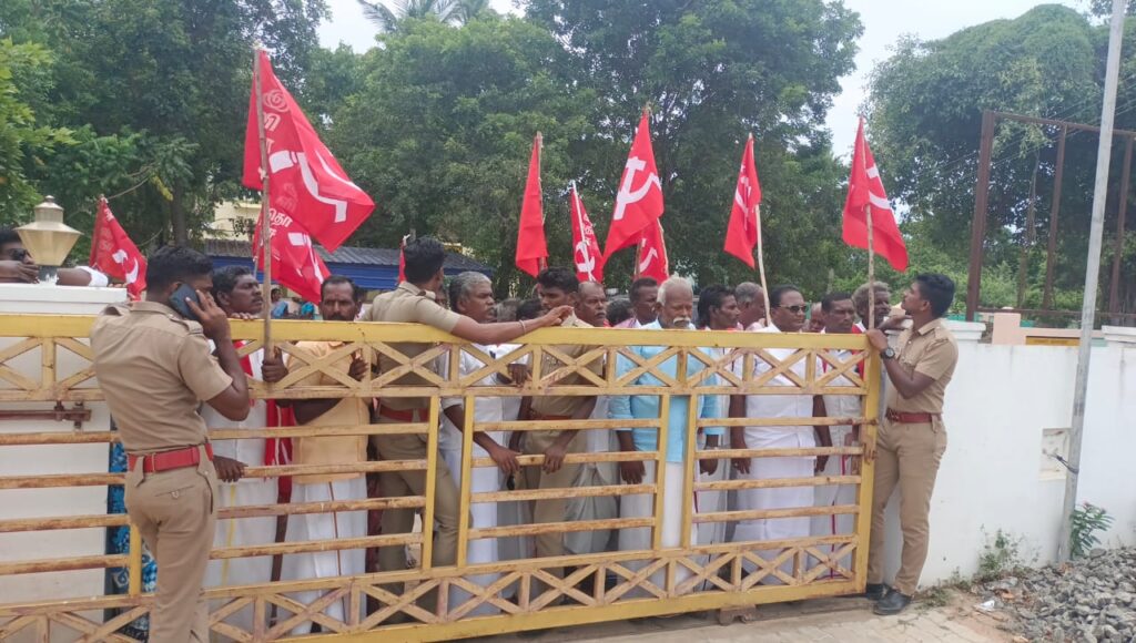 கே. சித்தார்த்தன் ,வி. அம்பிகாபதி,A. வெற்றியழகன் ஆகியோர் விளக்க உரை ஆற்றிட மற்றும் பல அகில இந்திய விவசாய தொழிலாளர் சங்கத்தினர் கலந்து கொண்டனர். இறுதியில் கோரிக்கைகளை நிறைவேற்றி கொடுத்திட கண்டன கோஷங்கள் எழுப்பப்பட்டன.