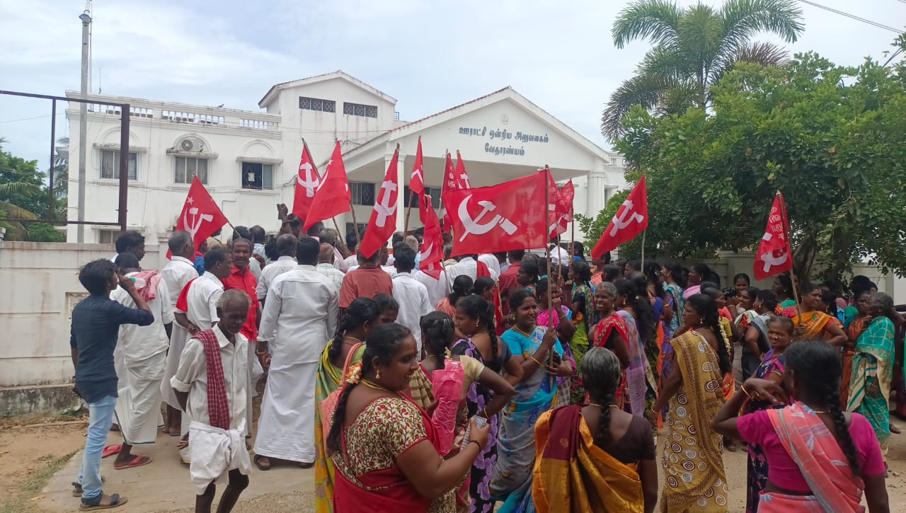 வேதாரண்யத்தில் அகில இந்திய விவசாய தொழிலாளர்கள் சங்கம் நடத்திய பெருந்திரள் ஆர்ப்பாட்டம் .