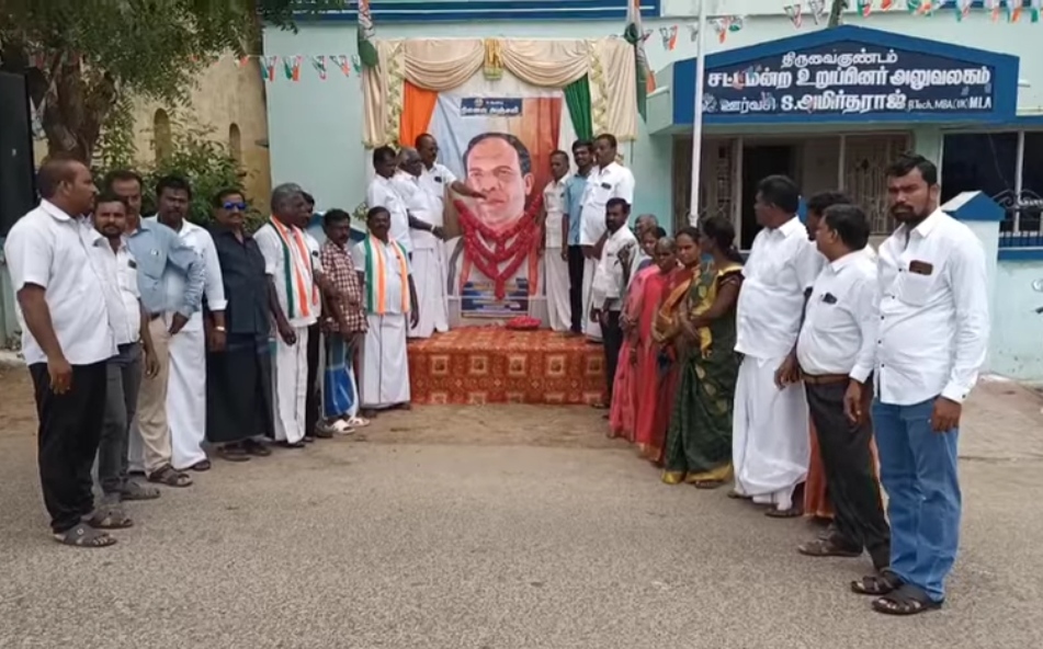 இதில் ஸ்ரீவை தொகுதி பொதுமக்கள் மற்றும் காங்கிரஸ் நிர்வாகிகள் மற்றும் பல்வேறு அமைப்பினர் முன்னாள் சட்டமன்ற உறுப்பினர் ஊர்வசி செல்வராஜ் அவர்களின் திருஉருவப்படத்திற்கு மலர் தூவி மரியாதை செலுத்தினர்