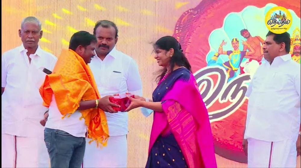 நெய்தல் கலை விழா தொடக்க நிகழ்ச்சியை மாப்பிள்ளையூரணி ஊராட்சியில் சிறப்பாக செயல்படுத்திய மாப்பிள்ளையூரணி ஊராட்சி மன்ற தலைவர் சரவணக்குமாருக்கு