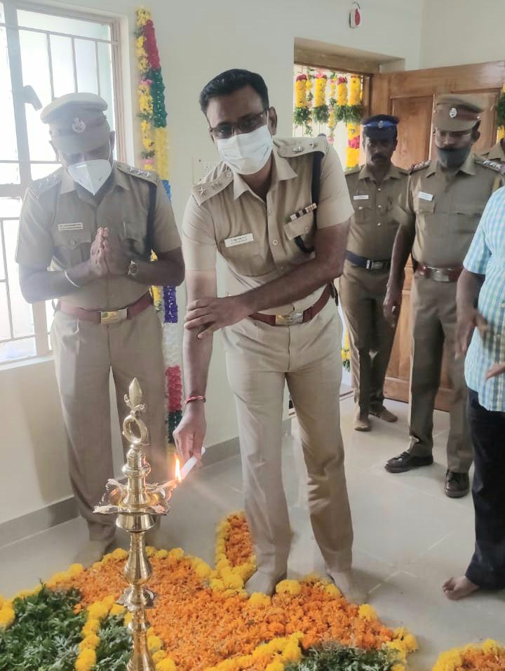 மேற்படி புதிதாக கட்டப்பட்ட குடியிருப்புகளை தூத்துக்குடி மாவட்ட காவல் கண்காணிப்பாளர் திரு. எஸ். ஜெயக்குமார் அவர்கள் பார்வையிட்டு காவலர் குடியிருப்பில் குத்துவிளக்கேற்றி வைத்தார்.