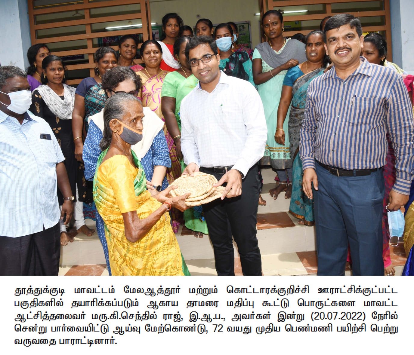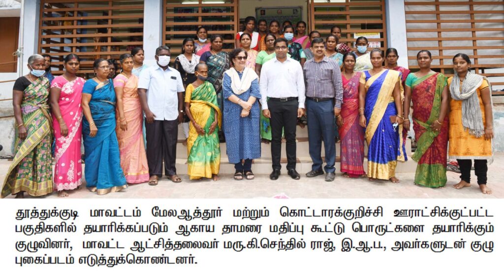 தூத்துக்குடி மாவட்டம் மேலஆத்தூர் மற்றும் கொட்டாரக்குறிச்சி ஊராட்சிக்குட்பட்ட பகுதிகளில் தயாரிக்கப்படும் ஆகாய தாமரை மதிப்பு கூட்டு பொருட்களை மாவட்ட ஆட்சித்தலைவர் மரு.கி.செந்தில் ராஜ், இ.ஆ.ப., அவர்கள் செய்தியாளர்களுடன் ஆய்வு மேற்கொண்டார்.