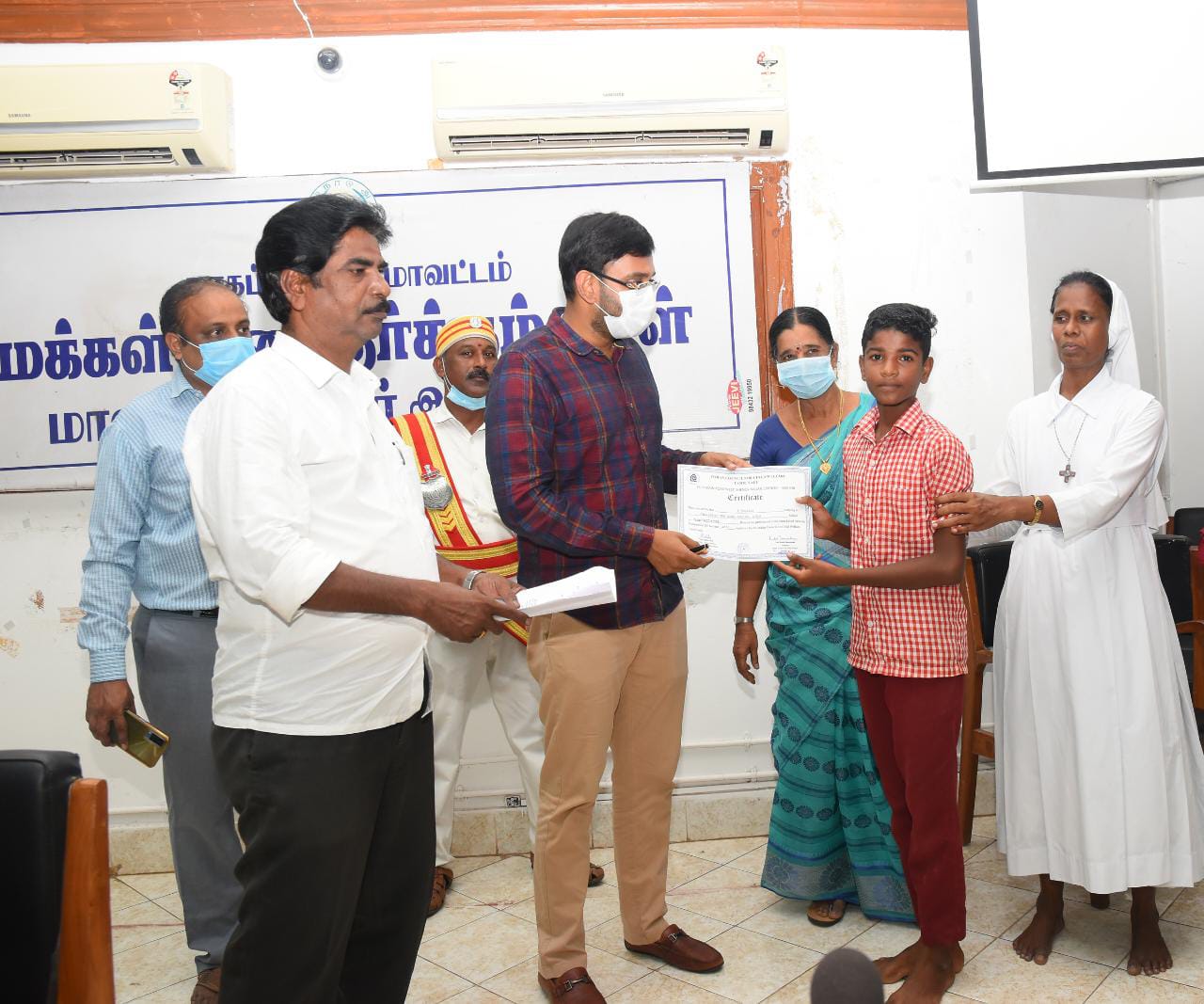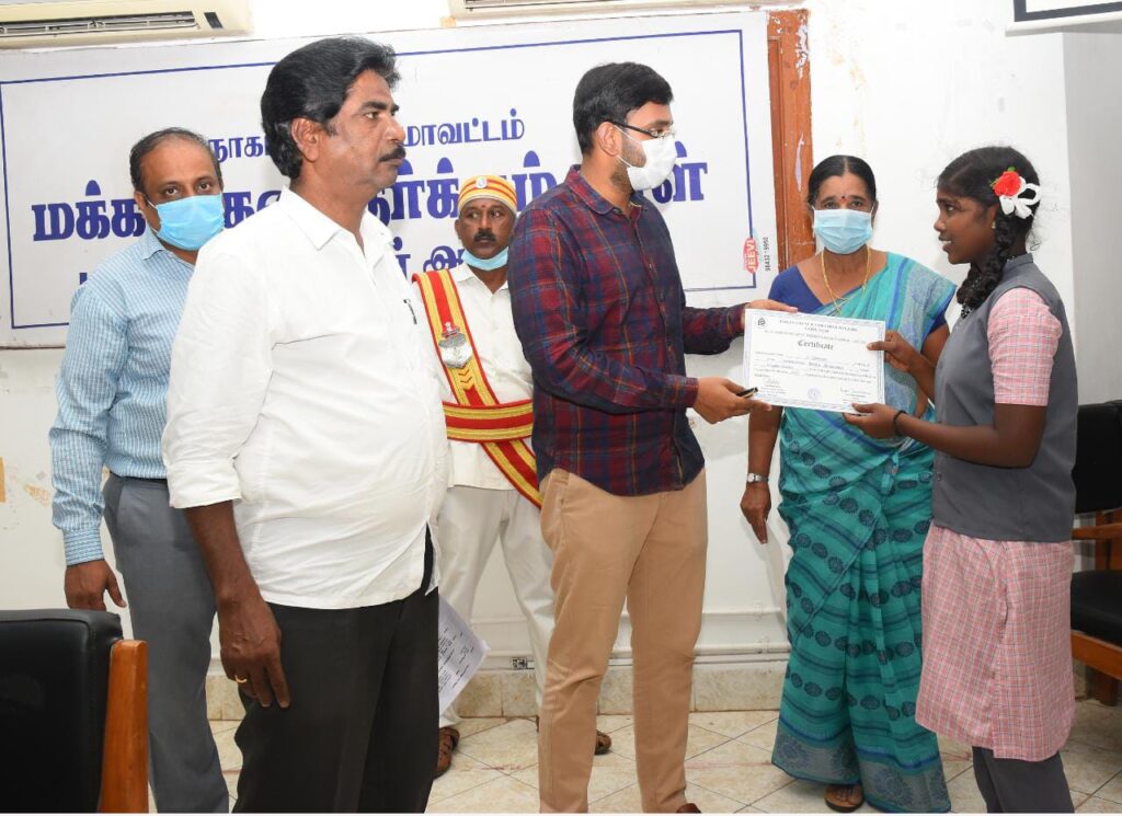 இந்திய குழந்தைகள் நலச்சங்கத்தின் மூலம் தேசிய அளவில் பள்ளி மாணவர்களைக் கொண்டு நாகப்பட்டினம் மாவட்டஅளவிலான வர்ணம் தீட்டுதல் போட்டிகளில் வெற்றி பெற்ற 5 மாணவ, மாணவிகளுக்கு பாராட்டு சான்றிதழ்களை மாவட்ட ஆட்சியர் வழங்கினார்.இக்கூட்டத்தில் மாவட்ட வருவாய் அலுவலர் ஷகிலா, சமூக பாதுகாப்பு துணை ஆட்சியர் ராஜன், செய்தி மக்கள் தொடர்பு அலுவலர் செல்வகுமார் உட்பட அரசு அலுவலர்கள் கலந்து கொண்டனர்.