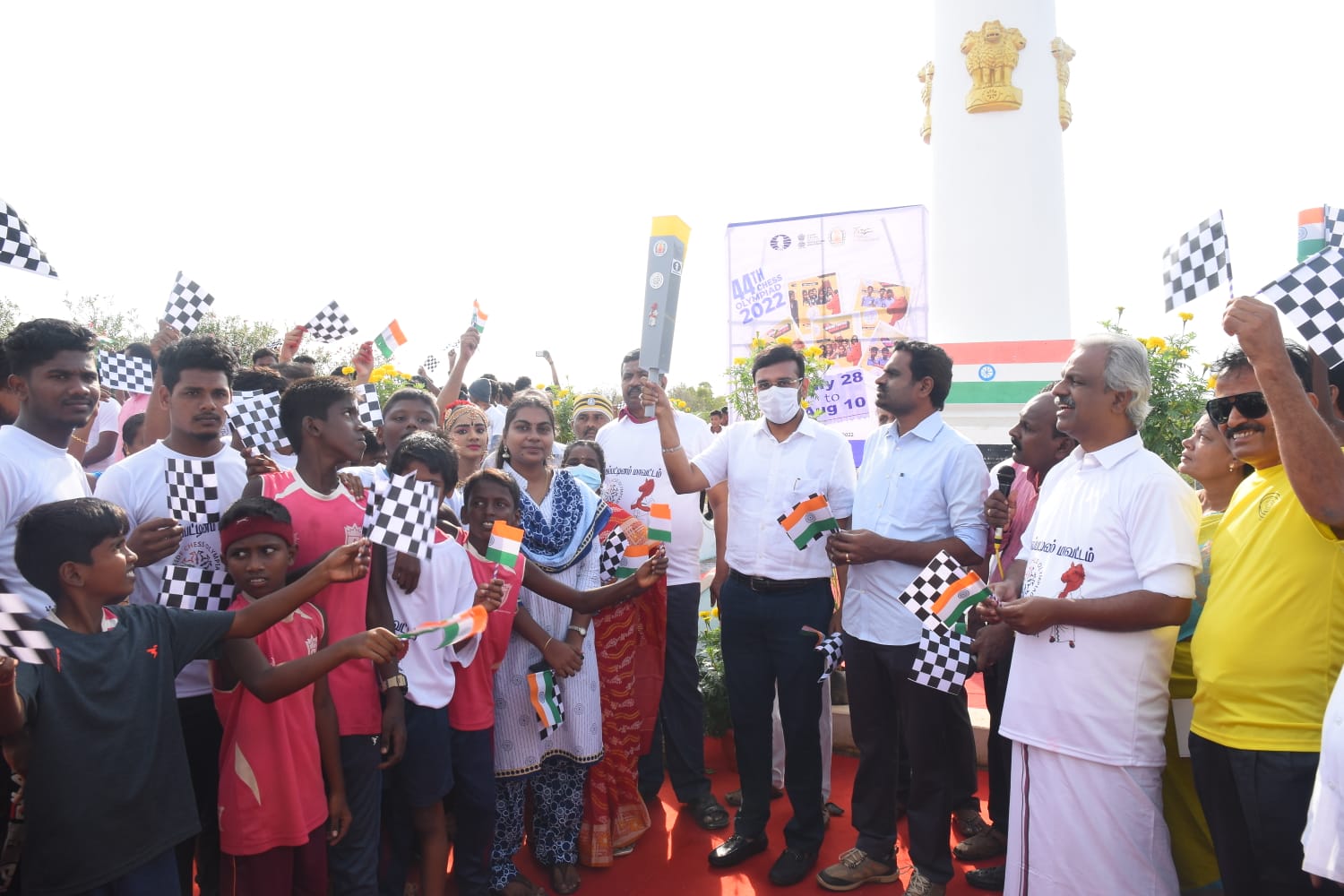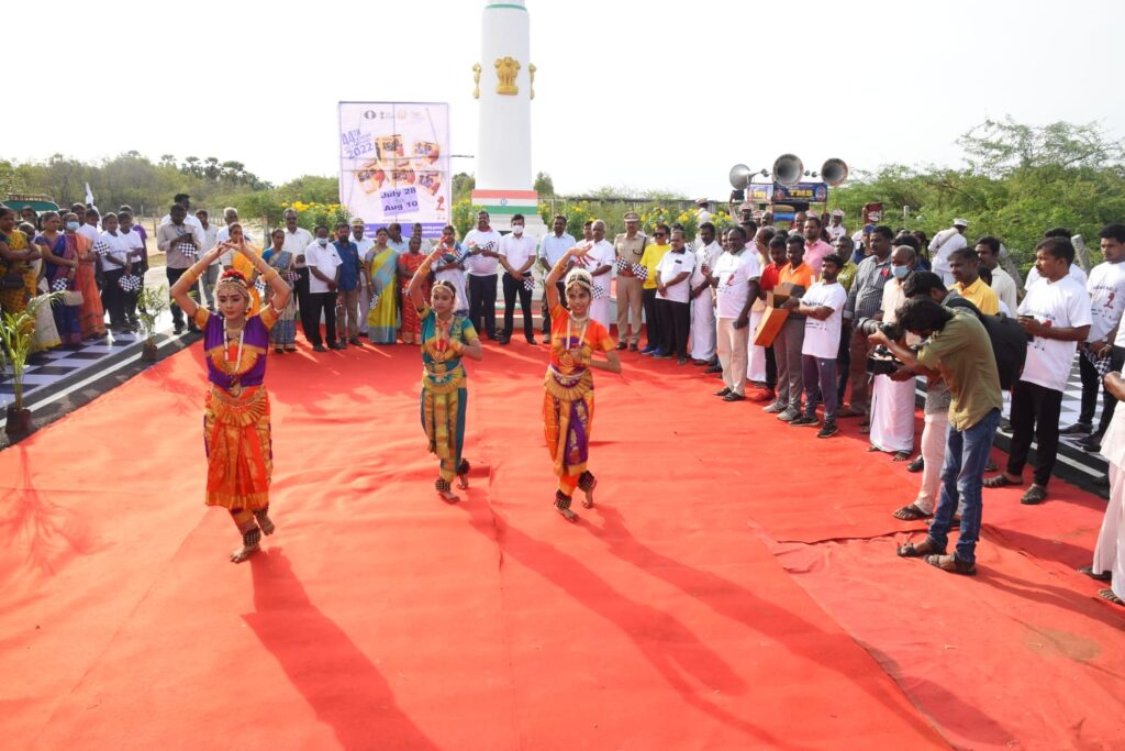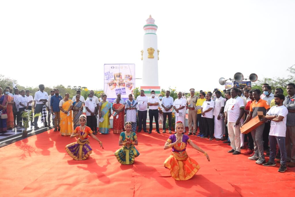 வேதாரண்யத்தில் 44 செஸ் ஒலிம்பியாட் தீப தொடர் ஓட்டத்தை அகஸ்தியம்பள்ளி உப்புசத்தியாக கிரக நினைவு ஸ்தூபியிலிருந்து மாவட்ட ஆட்சியர் அருண் தம்புராஜ் தொடங்கி வைத்தார்.