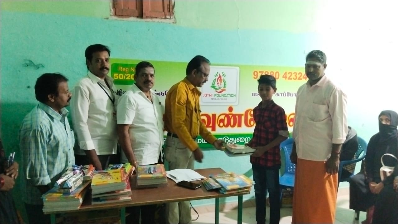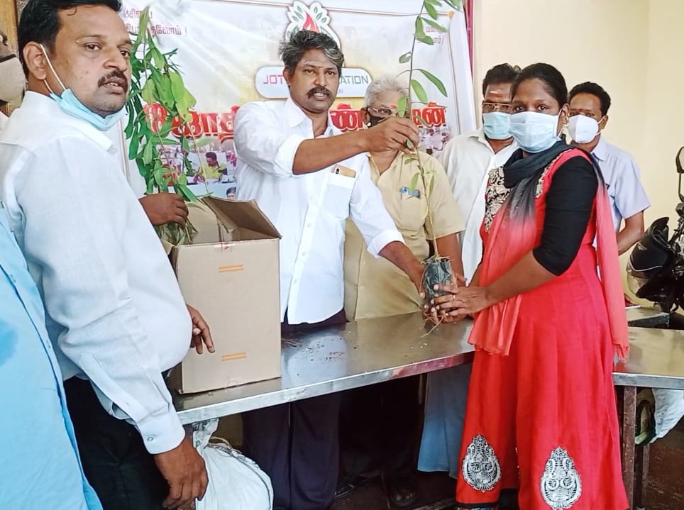 மயிலாடுதுறையில்அப்துல் கலாம் நினைவு நாளில் ஆரம்பித்து கடந்த ஆறு வருடங்களாக சாலையோரங்களில் வசிப்பவர்கள் மற்றும் ஆதரவற்றவர்கள் ஆகியோருக்கு தினசரி காலை உணவு வழங்கிவரும் ஜோதி பவுண்டேஷன் ஆறாம் ஆண்டு துவக்க விழாவை முன்னிட்டு மாற்றுத்திறனாளிகளுக்கு ஏழை-எளிய குடும்பங்களுக்கு அரிசி மளிகை பொருட்கள் உள்ளிட்ட நலத்திட்ட உதவிகளை வழங்கபட்டது அரசு பள்ளியில் பயின்று வரும் ஏழை எளிய மாணவ மாணவிகளுக்கு நோட்டு புத்தகம் பேனா பென்சில்கள் வழங்கி கலாமின் கனவை நிறைவேற்றும் வகையில் மாணவ மாணவிகளுக்கு மரக்கன்றுகள் வழங்கி மண்வளம் நீர்வளம் இயற்கையின் அவசியத்தை எடுத்துரைத்தனர்