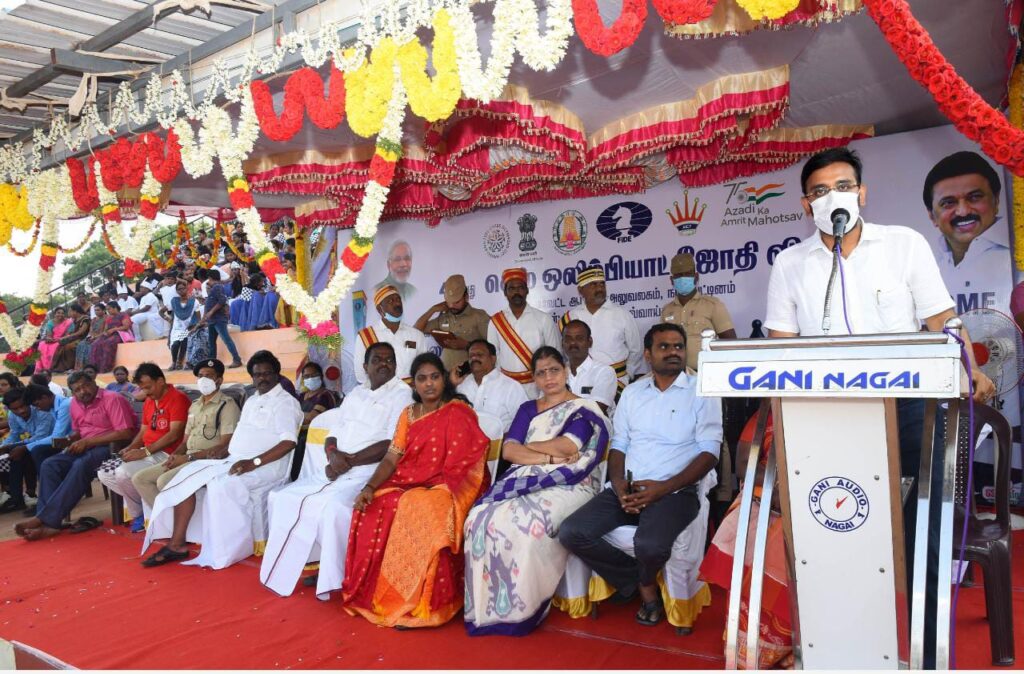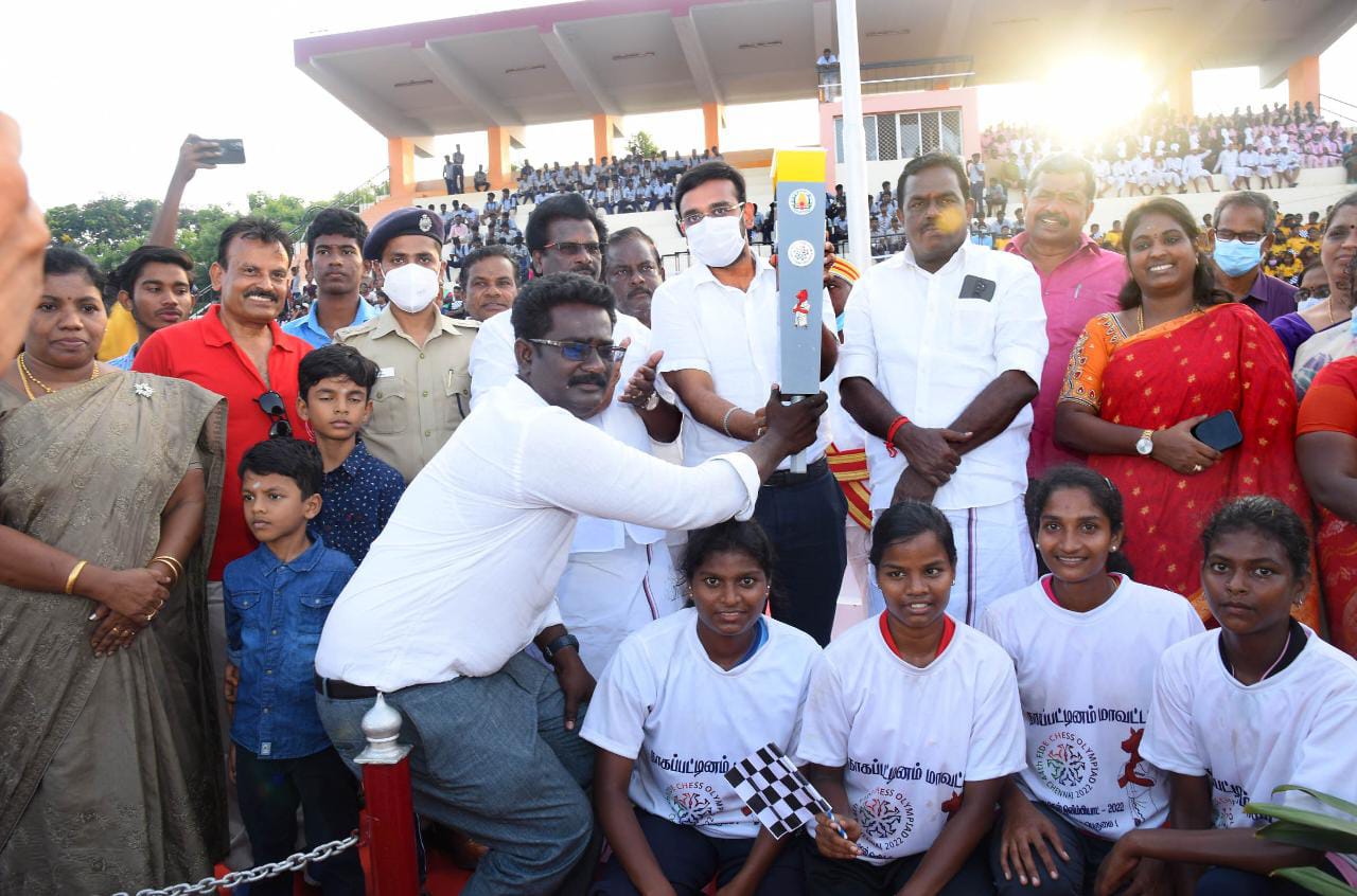 44-வது செஸ் ஒலிம்பியாட் போட்டிகள் எதிர்வரும் 28.07.2022 முதல் 10.08.2022 வரை தமிழகத்தில் சென்னை மாமல்லபுரத்தில் நடைபெற உள்ளது. மேற்படி போட்டியில் 188 நாடுகளை சார்ந்த விளையாட்டு வீரர்கள் மற்றும் வீராங்கனைகள் கலந்து கொள்ள உள்ளனர். அதனையொட்டி மதுரையில் மாவட்டத்தில் இருந்து நாகப்பட்டினம் மாவட்டத்திற்கு கொண்டு வரப்பட்ட செஸ் ஒலிம்பியாட் ஜோதியை வேதாரண்யம் உப்புசத்தியாகிரக ஸ்தூபியிலிருந்து மாவட்ட ஆட்சியர் டாக்டர் அருண்தம்புராஜ் தொடங்கி வைத்ததைத் தொடர்ந்து, செஸ் ஒலிம்பியாட் ஜோதி மாவட்ட விளையாட்டு வீரர்கள் மற்றும் வீராங்கனைகள் ஜோதியினை பெற்றுக்கொண்டு வேதாரணீஸ்வரர்ஆலயம் வழியாக வேதாரண்யம் பேருந்து நிலையம், தோப்புத்துறை, செம்போடை, தலைஞாயிறு, திருக்குவளை, மேலப்பிடாகை, திருப்பூண்டி, வேளாங்கண்ணி சர்ச், புத்தூர் அண்ணாசிலை, கோட்டைவாசல், நாகப்பட்டினம் பழைய பேருந்து நிலையம், புதிய பேருந்து நிலையம், நாகூர் தர்கா சென்று மாவட்ட ஆட்சியர் வளாகம் முத்தமிழறிஞர் டாக்டர் கலைஞர் மு.கருணாநிதி மாவட்ட விளையாட்டு அரங்கிற்கு மாலை 4.30 மணியளவில் வந்தடைந்தனர்.