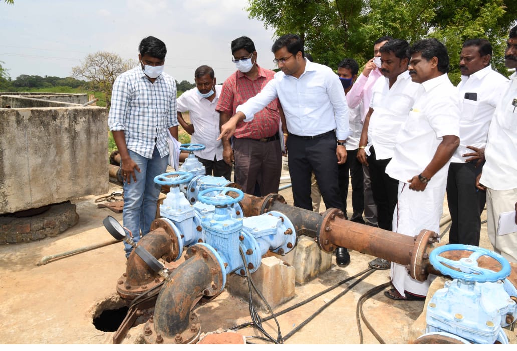 தூத்துக்குடி மாவட்டத்தில் தமிழ்நாடு குடிநீர் வாரியம், மூலம் மங்களக்குறிச்சியை தலைமையிடமாகக் கொண்டு செயல்படுத்தப்பட்டு வரும் 43 45 கூட்டுக் குடிநீர் திட்டத்தை கலெக்டர் செந்தில்ராஜ், சண்முகையா எம்.எல்.ஏ ஆகியோர் மங்கள குறிச்சி நீரேற்று நிலையம் மற்றம் தாமிரபரணி ஆற்றுப்படுகை குரங்கணிக்கு அருகில் அமைந்துள்ள ஏழு எண்ணிக்கையிலான நீர்உறிஞ்சும் கிணற்றினை ஆய்வு செய்தனர்.