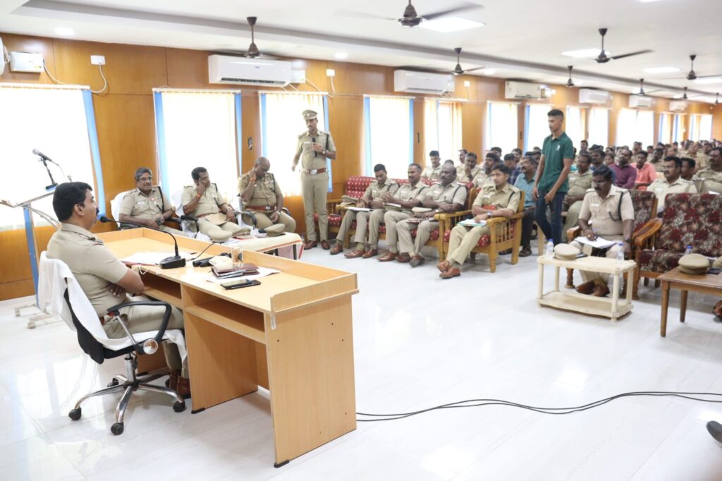 தூத்துக்குடி மாவட்டத்தில் குற்ற சம்பவங்களை தடுக்கும் பொருட்டு காவல்துறை அதிகாரிகள் மற்றும் காவல்துறையினருடன் மாவட்ட காவல் கண்காணிப்பாளர் டாக்டர் திரு. எல். பாலாஜி சரவணன் அவர்கள் தலைமையில் ஆலோசனை கூட்டம்.